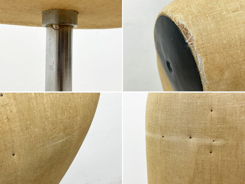 全体に染みや取りきれない汚れ、引き攣れ、解れ、肩付近には擦り切れている箇所が見られ、金具部分には錆やくすみ、木部には打痕やペイントロスがございます。