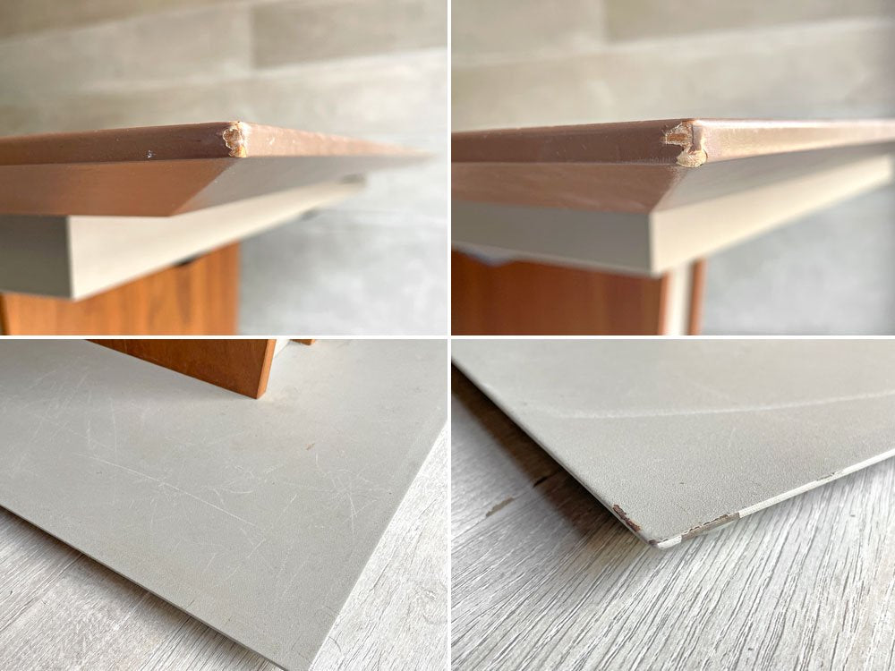 天板に線傷や縁の打痕、ベースに擦り傷や線傷、ペイントロスが見られます。可動部の動作は正常で、実用においての不具合もございません。中古品としては良好なコンディションを保っております。