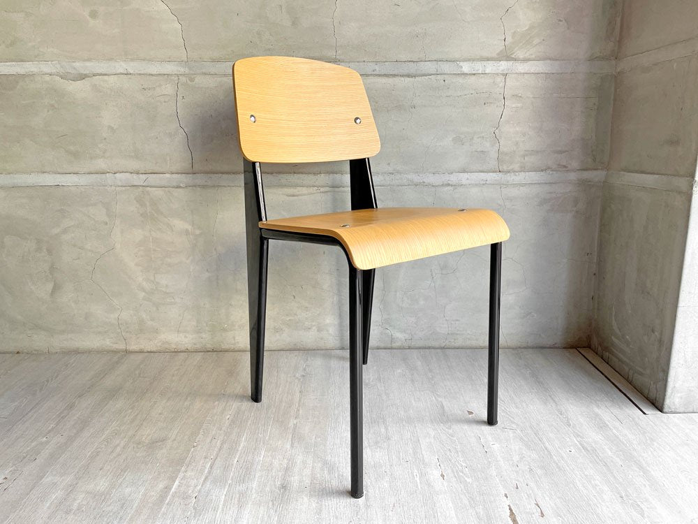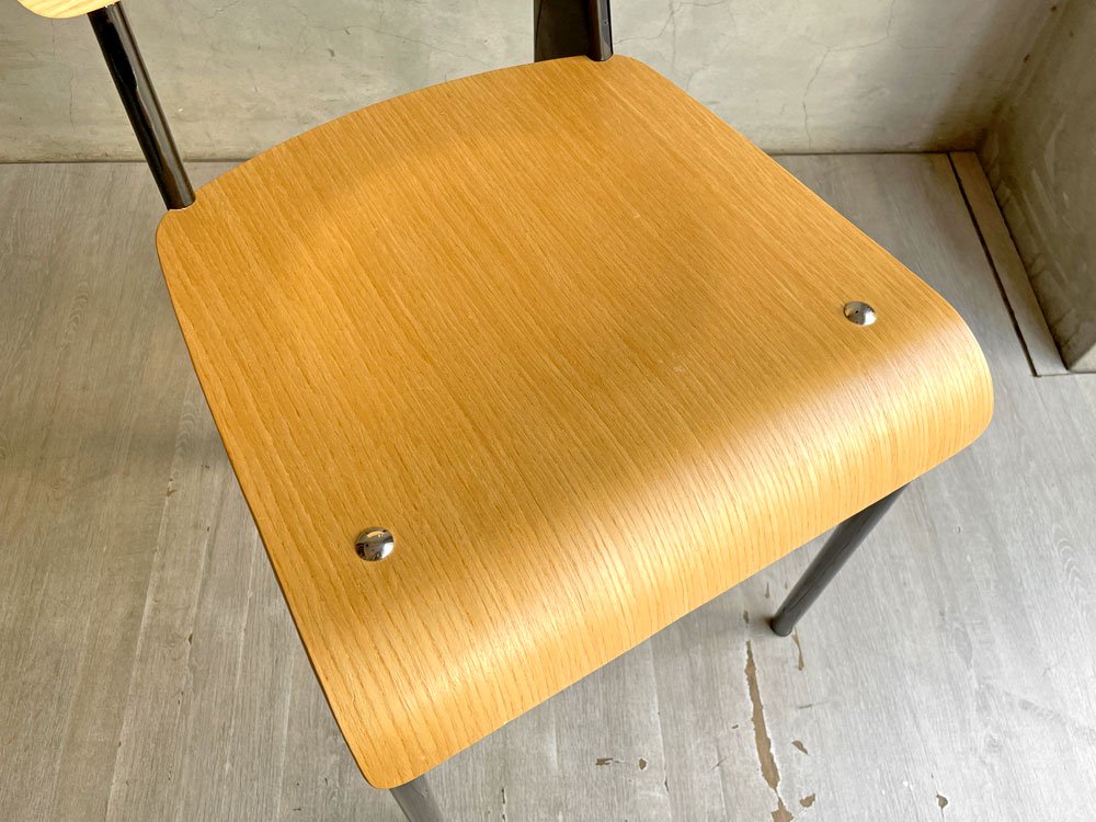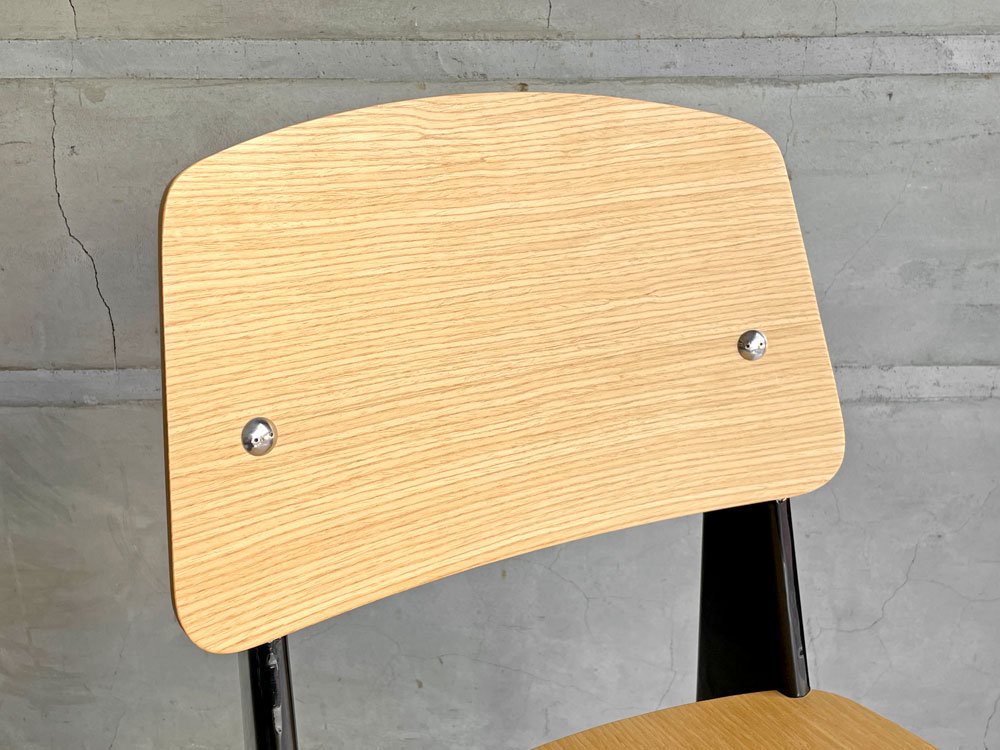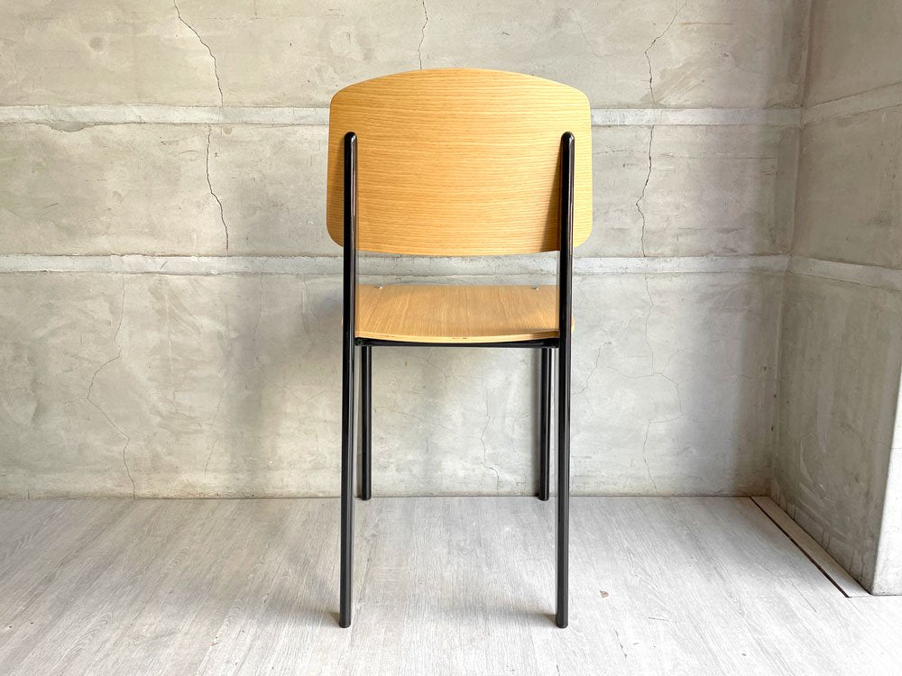 背座にはアッシュ材、フレームにはスチールが使用され、素材とカラーのコントラストが楽しい仕上がり。スクールチェアのような素朴さがありながらもスタイリッシュにまとめ上げられています。