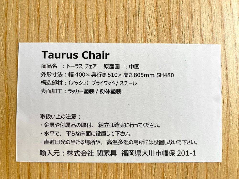 国内人気家具ブランドクラッシュゲートなどを手掛ける"関家具"の『トーラスチェア Taurus Chair』です。