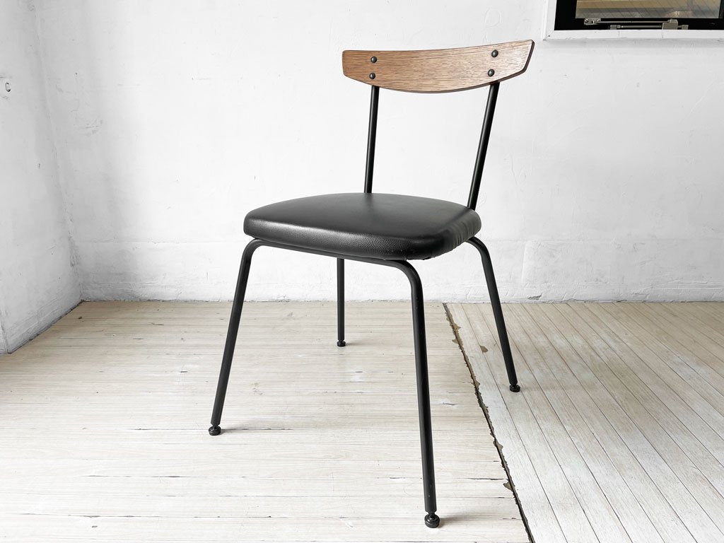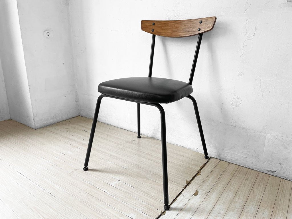 木材とアイアンの組み合わせが無骨ながらもすっきりとした雰囲気の一脚。