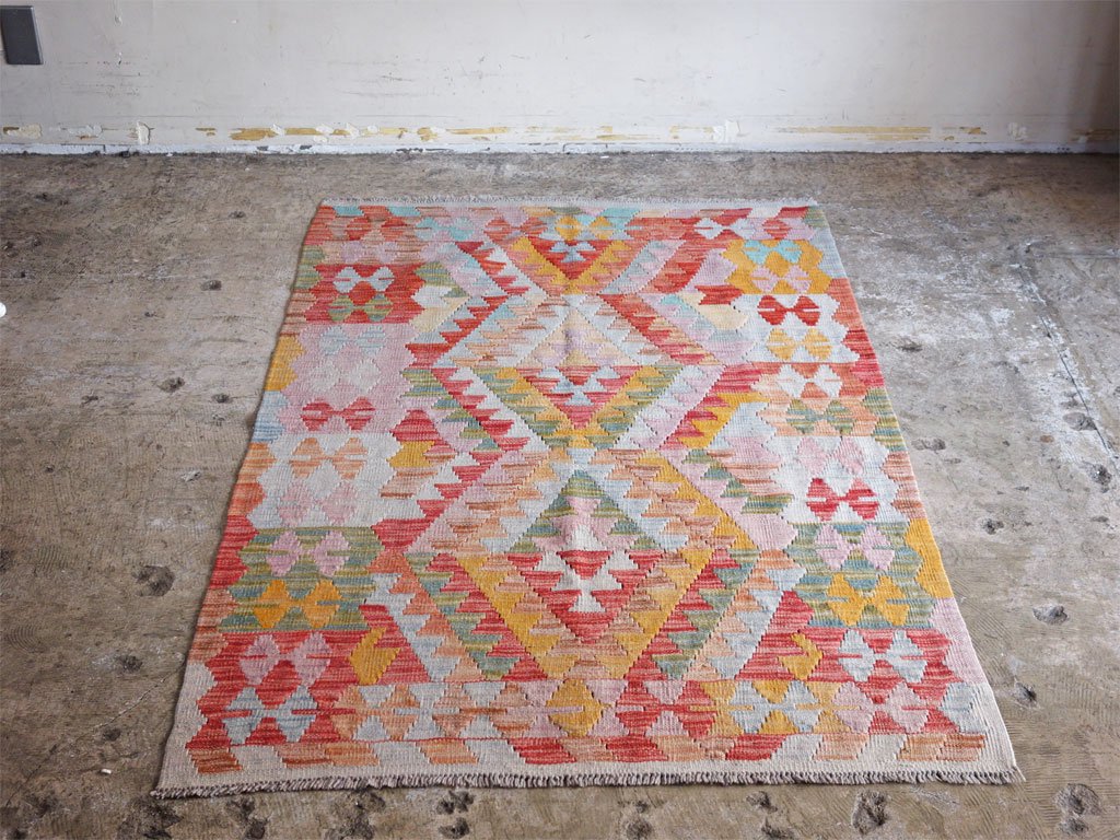 トゥモローランド TOMORROWLAND キリムラグ 158×100cm 手織り絨毯 幾何学模様 アフガニスタン ■