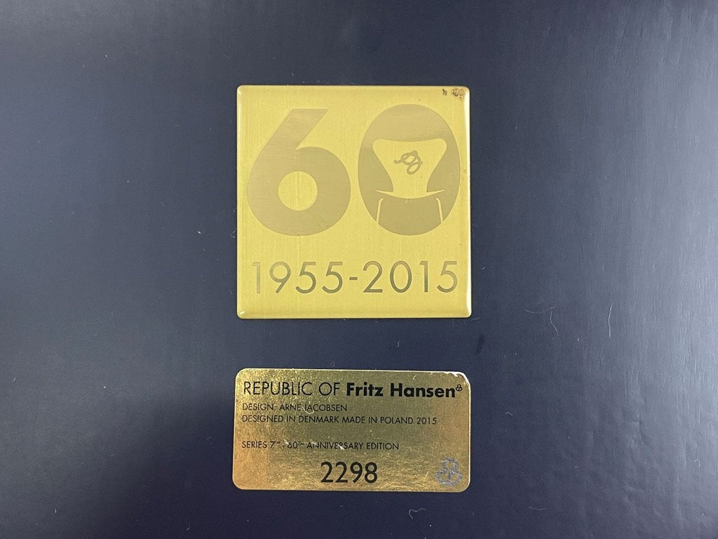 幅広いカラーバリエーションで展開する名作椅子ですが、今回はフリッツ・ハンセンのデザインアイコンの60周年を記念して製作されたアニバーサリーエディションモデル「ダークブルー」が入荷致しました。シートの下部には、特別なゴールド色のプレートが付けられています。コレクターズアイテムとしてもオススメの逸品です。