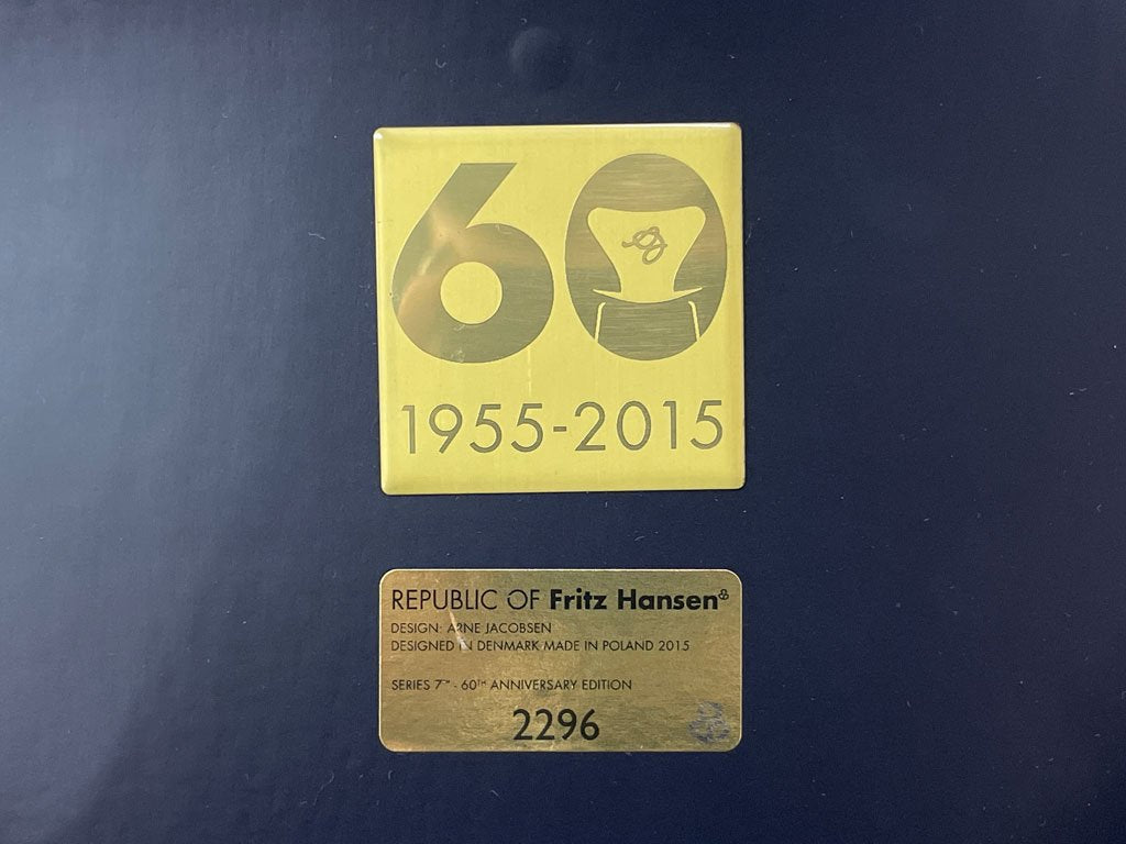幅広いカラーバリエーションで展開する名作椅子ですが、今回はフリッツ・ハンセンのデザインアイコンの60周年を記念して製作されたアニバーサリーエディションモデル「ダークブルー」が入荷致しました。シートの下部には、特別なゴールド色のプレートが付けられています。コレクターズアイテムとしてもオススメの逸品です。