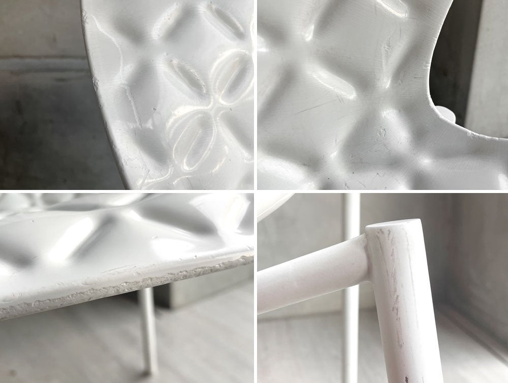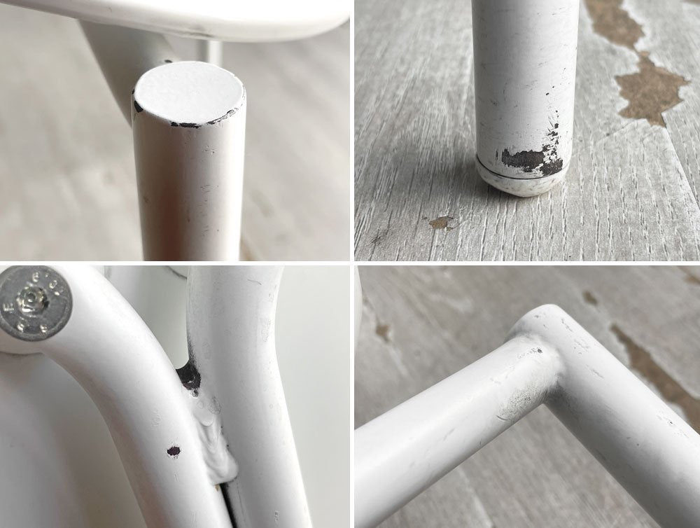 使用に伴い、シェルには擦れ等の小傷、黒ずみやペイントロス、ガリ傷が見られます。脚部にも同様のダメージが見受けられます。全体的に使用感はございますが、着座は問題無く行えこれからも実用頂けるコンディションを保っております。