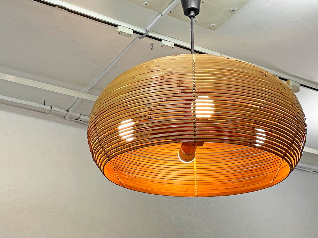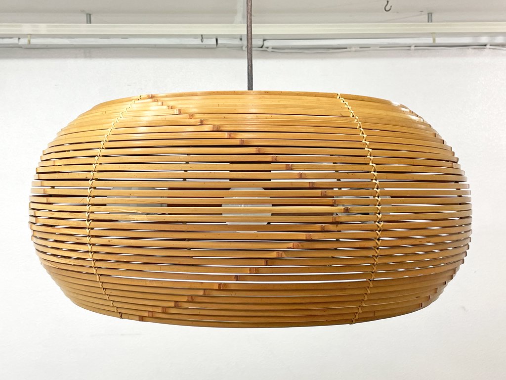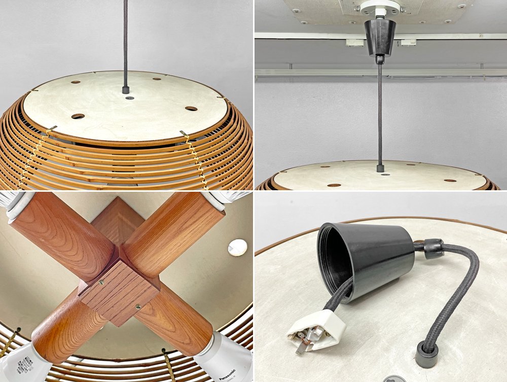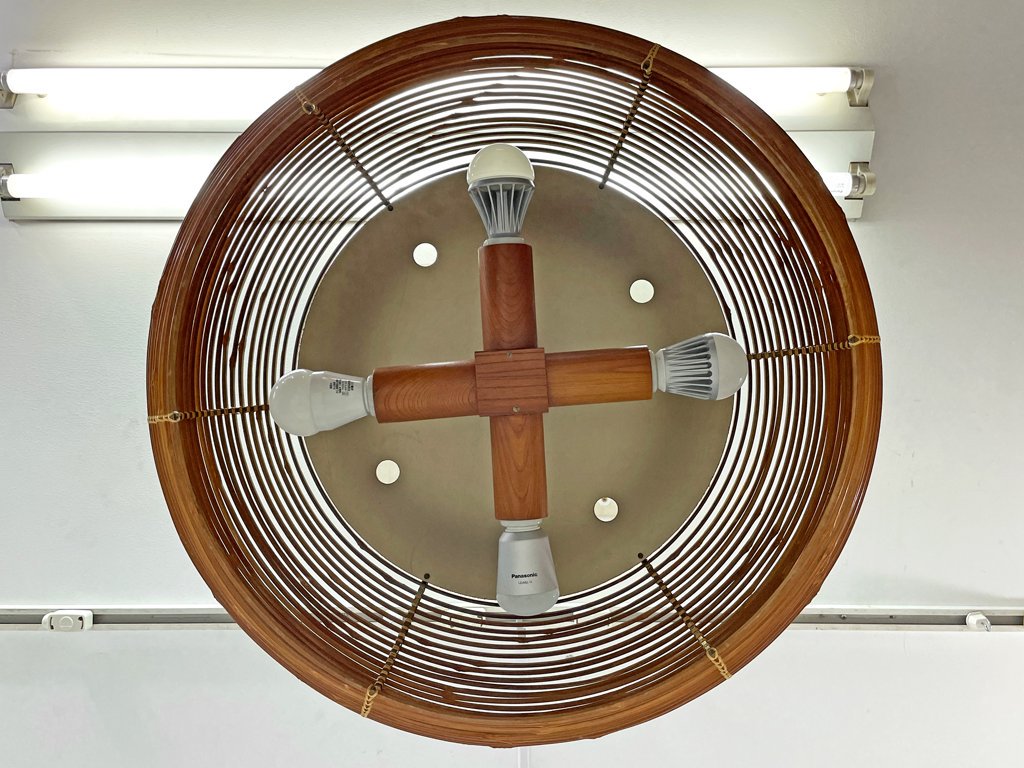 ヤマギワ YAMAGIWA 70s ビンテージ 4灯 ペンダントランプ 竹編み W60 町田悟 和モダン ●
