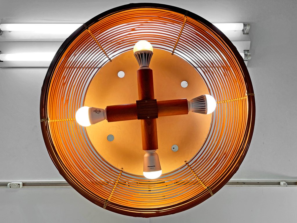 70s ビンテージ 4灯 ペンダントランプ 竹編み