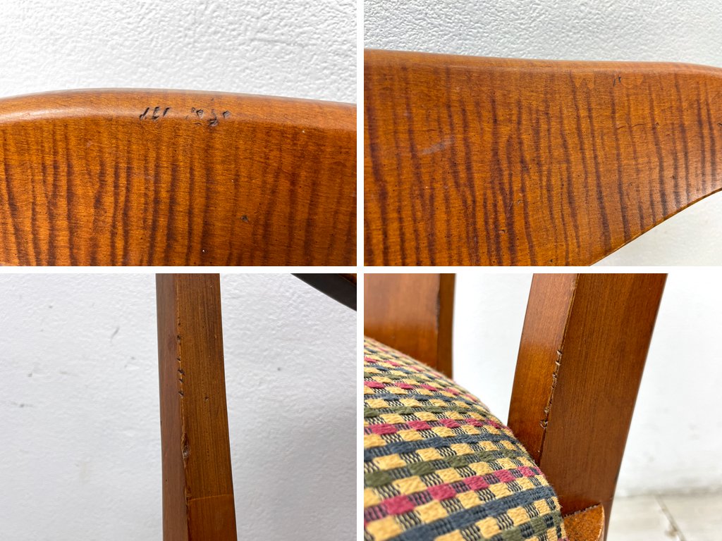 使用に伴い、擦れや打痕、ペイントロス、色ムラ、補修痕、染み、取りきれない汚れ等が見受けられます。また、クッションに毛羽立ちなどがございますがへたりなどはなく、これからも気持ちよく実用いただけるコンディションを保っております。