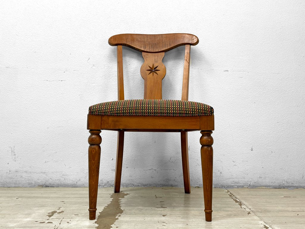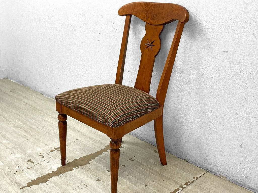 丁寧に彫られた背もたれの八芒星などの細部から、手作業で仕上げられている事が伺えます。