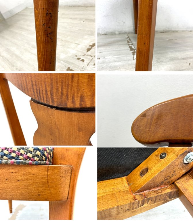 使用に伴い、擦れや打痕、色ムラ、補修痕、染み、取りきれない汚れ等が見受けられます。また、クッションに取り切れない汚れや毛羽立ちなどがございますがへたりなどはなく、これからも気持ちよく実用いただけるコンディションを保っております。