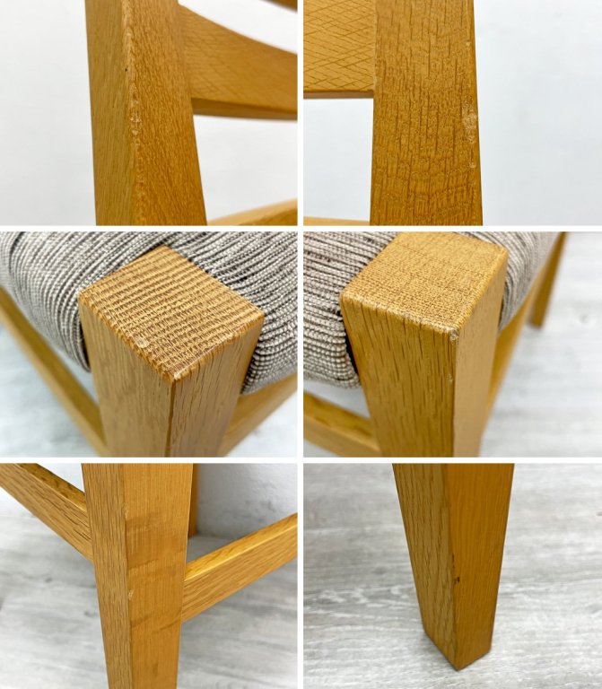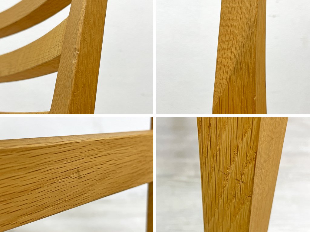 こちらは同社が手掛けた木製ダイニングチェア。フレームには森の木々の中で最も進化した組織構造を持ち、はっきりとした杢目により「森の王」の異名を持つナラ無垢材を使用しています。ストレートラインを基調に細身のウッドフレームで構成されスッキリとした印象に。脚部は貫で繋がり確りとした強度もございます。温かみあるナチュラル色は周りの木製家具やフローリングとも良く溶け込み、インテリアコーディネートに不安のある方でも安心してお使い頂けます。