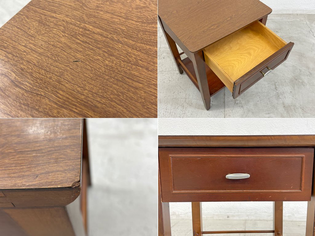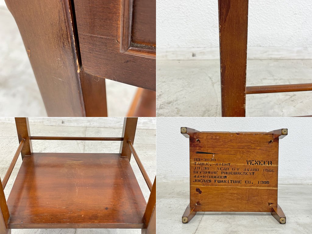 Joerns Furniture ナイトテーブル サイドテーブル ウォールナット材 デコラトップ 抽斗1杯 USビンテージ 米軍家具 ミッドセンチュリー〓