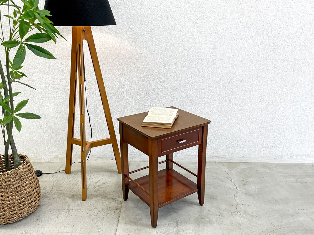 丁寧に作られ使われ、経年と重厚感が見事なバランスで魅力を放つナイトテーブルです。