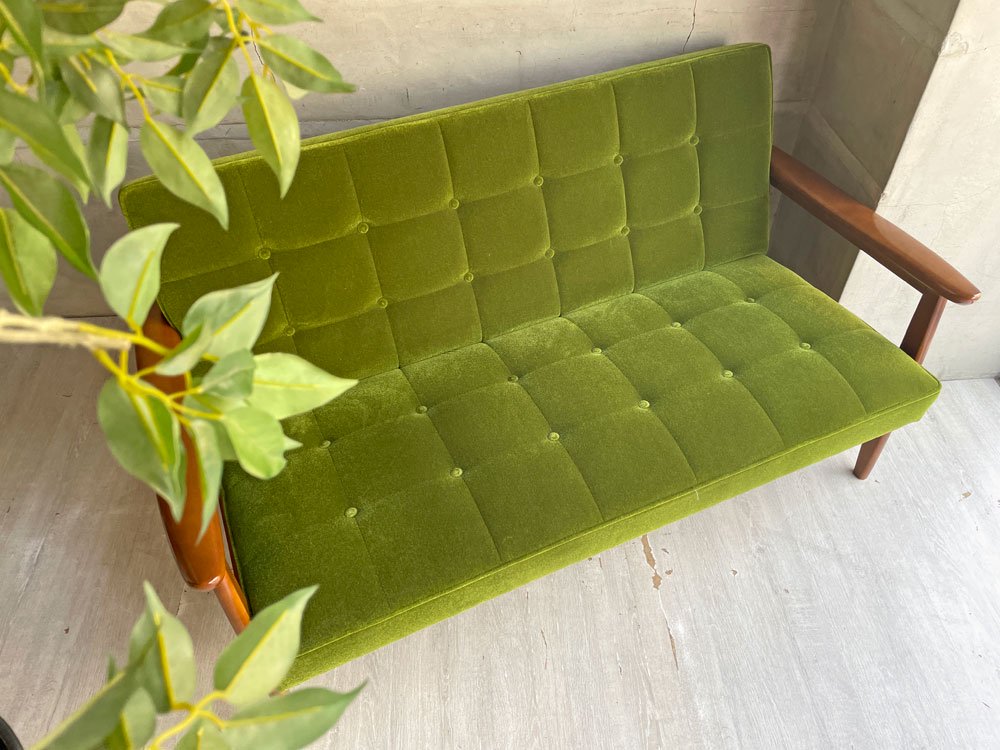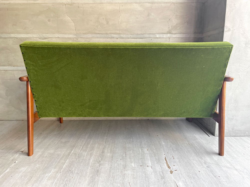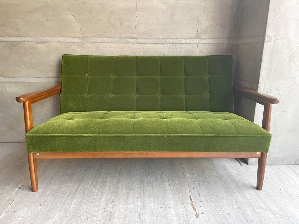 カリモク60 Karimoku60 Kチェア 2シーター ソファ モケットグリーン 60's ミッドセンチュリー レトロスタイル ♪