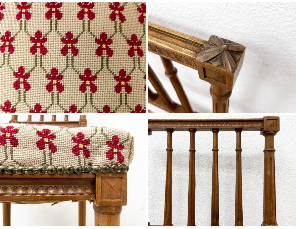 主に客間や装飾家具として造られていた椅子となっており、着座時の強度を考慮していないと思われる極めて繊細な装飾、華奢なディティールが特徴的。