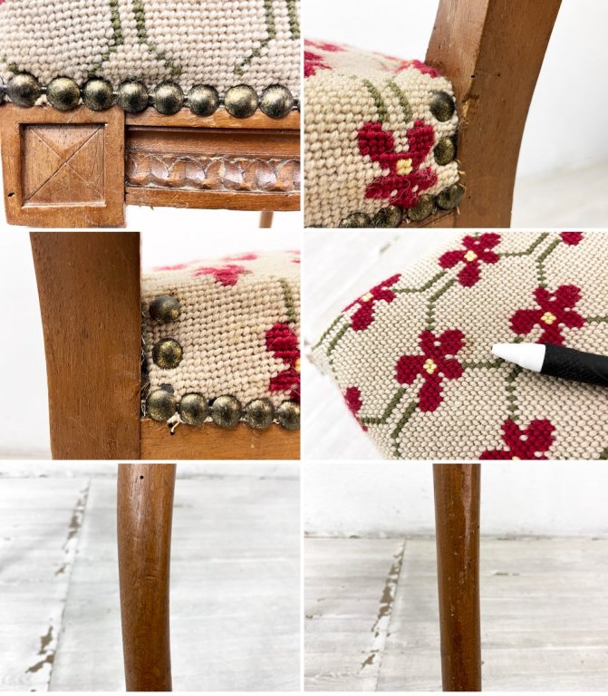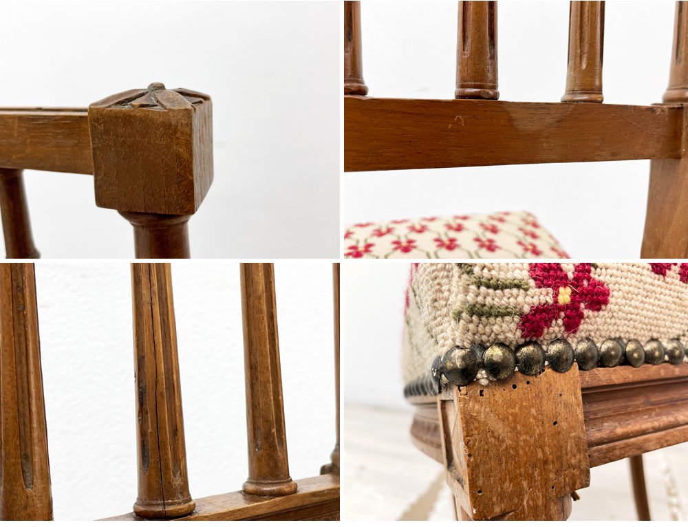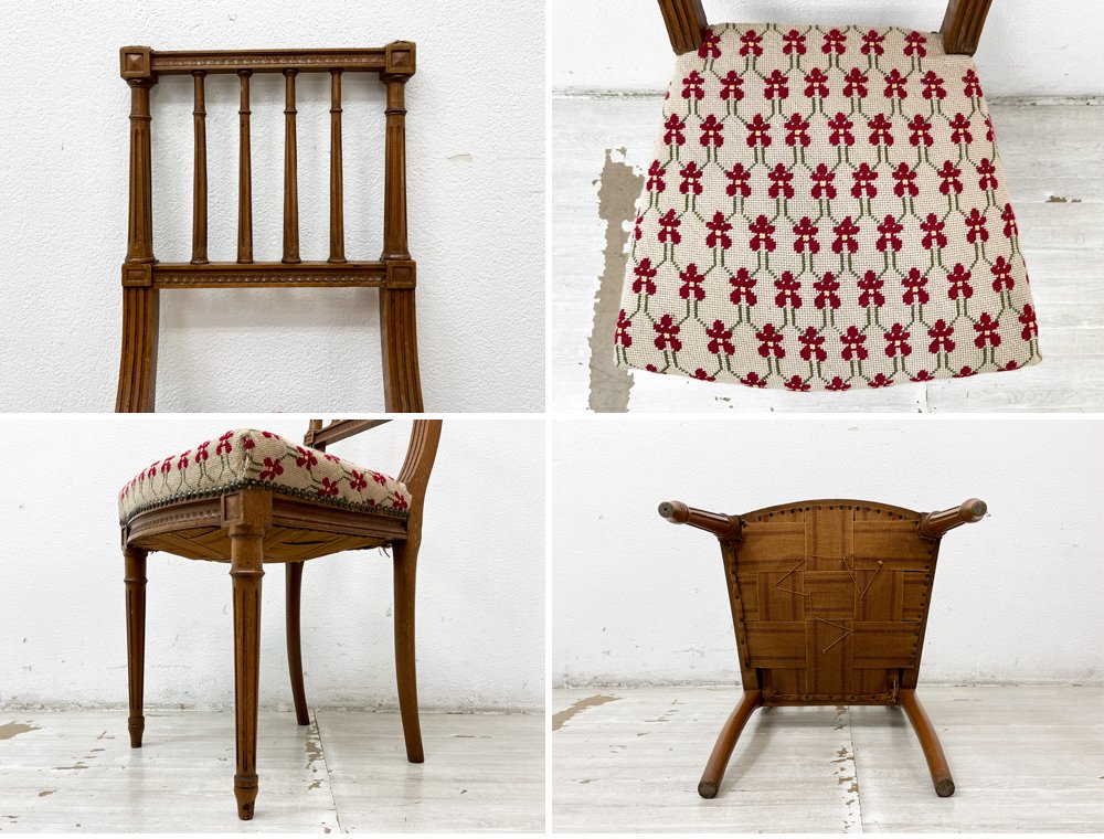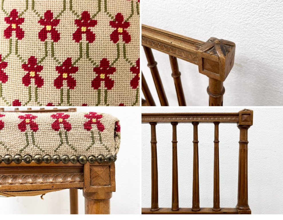主に客間や装飾家具として造られていた椅子となっており、着座時の強度を考慮していないと思われる極めて繊細な装飾、華奢なディティールが特徴的。