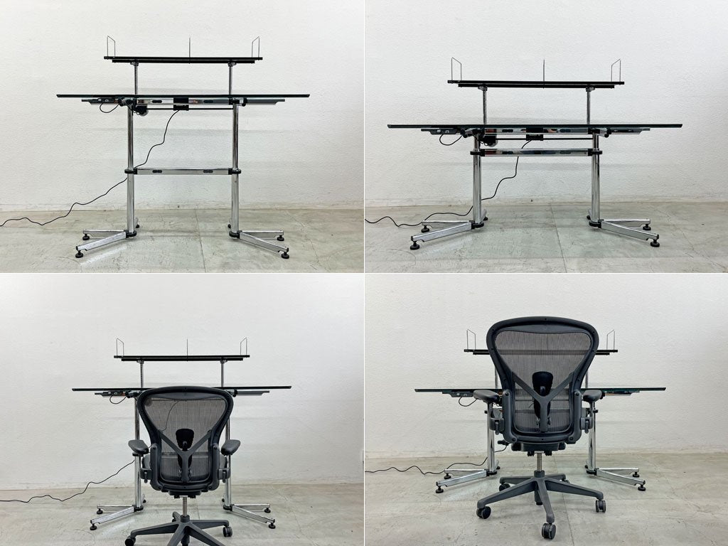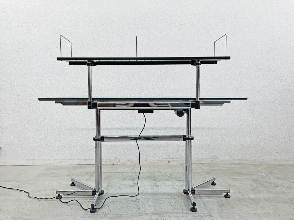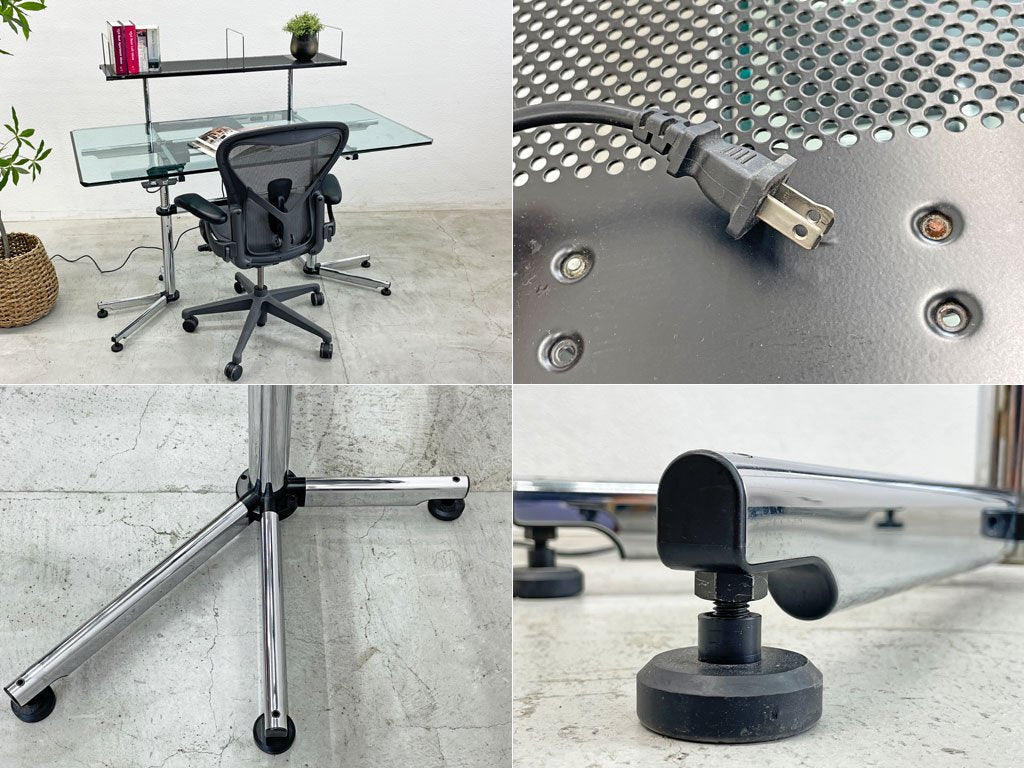 ユーエスエムハラー USM Haller キトス KITOS デスク ガラストップ シェルフ付き 電動昇降機能付き アジャスター付き オフィス家具 スイス〓