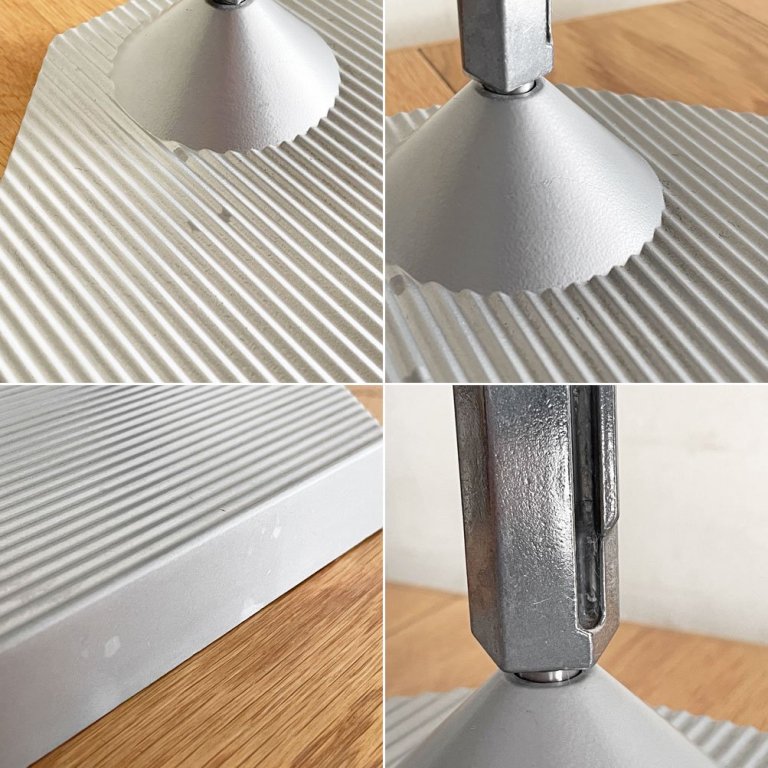使用に伴いシェードに細かな線傷と擦れ、アームやベース部にも擦れや僅かな色のくすみ等が見られますが、いずれも美観を損ねるものではございません。アームを動かす際にやや軋みがございますが、問題なくお使い頂けます。その他大きなダメージ等は見られず、概ね良好なコンディションを保っております。