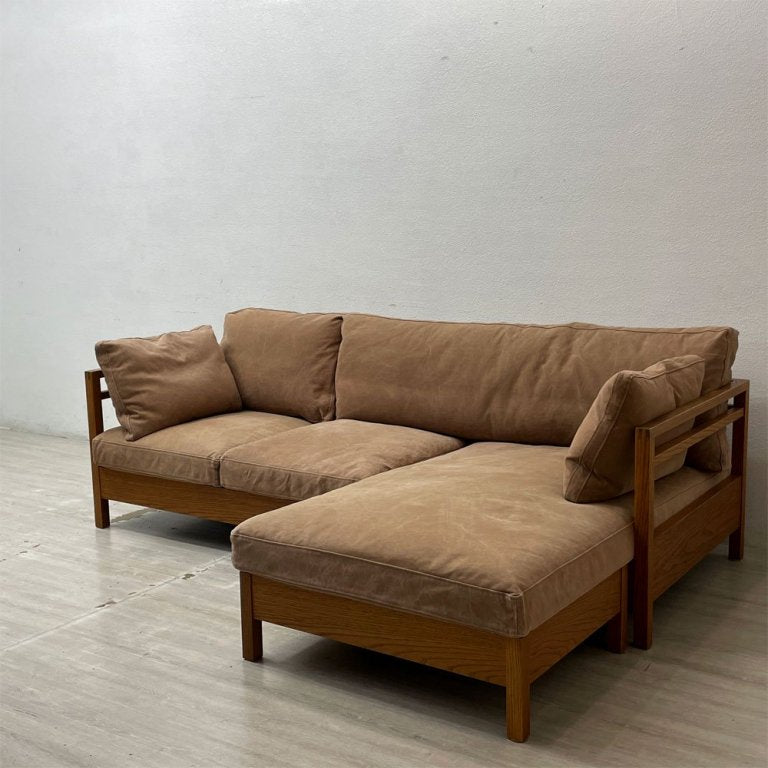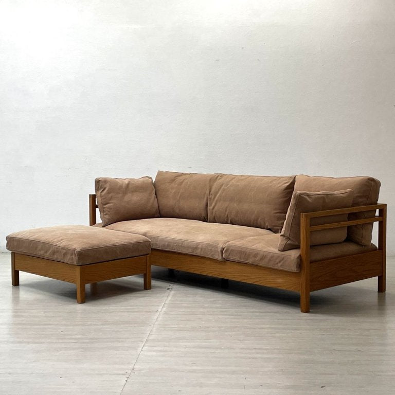 広松木工 HIROMATSU リポーゾ RIPOSO ソファ 3人掛け & オットマン オーク材 カバーリング ファブリック ピエトラ 帆布生地 定価¥534,600- ●