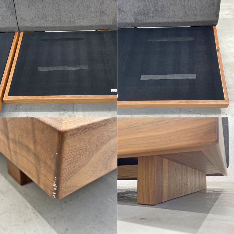 使用に伴い、カウチソファフレーム部に細かな擦れ傷、取り切れない汚れがございますが大きく美観を損なうダメージではありません。