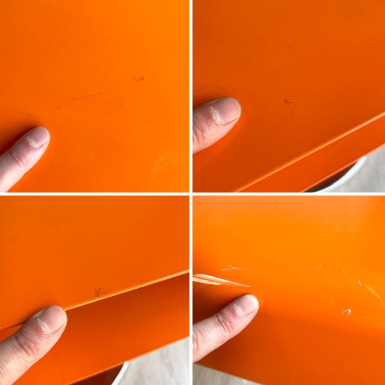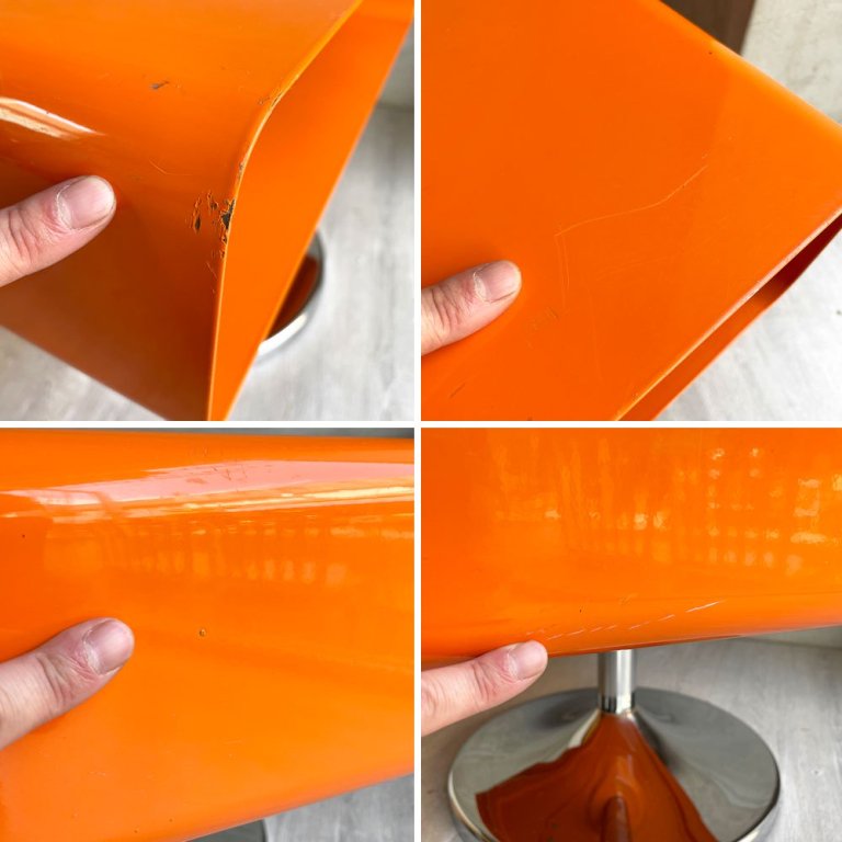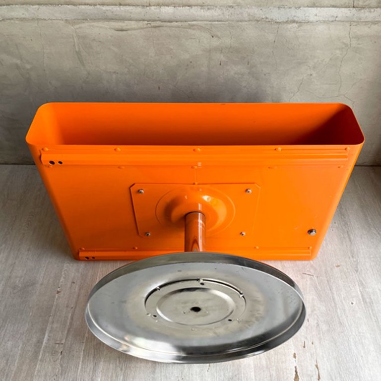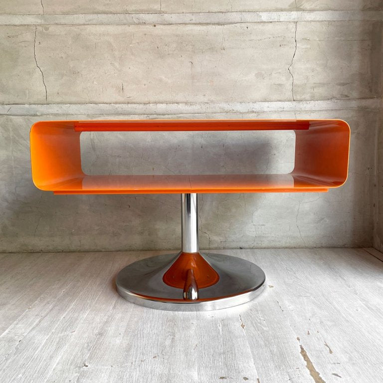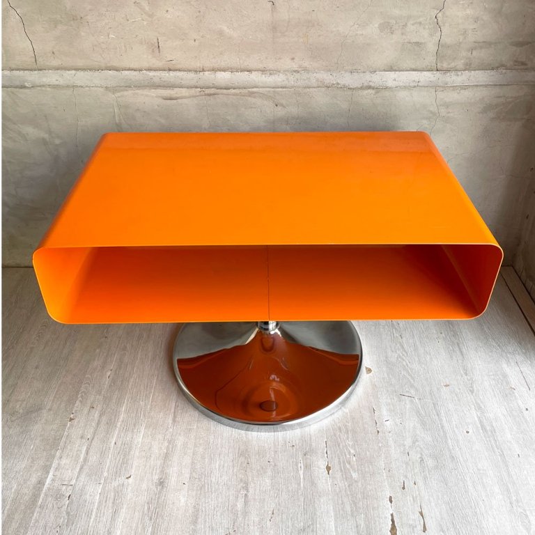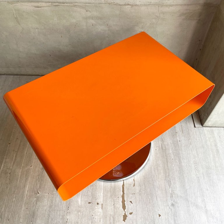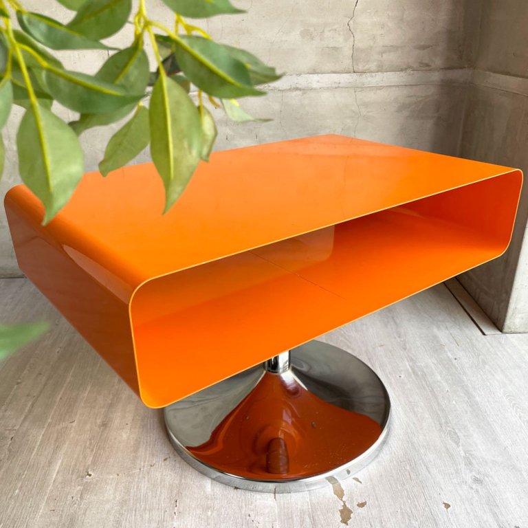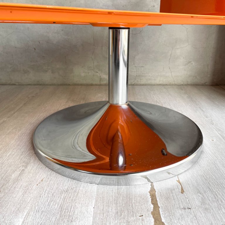 レトロスタイル コーヒーテーブル サイドテーブル オレンジ 1本脚 スペースエイジ 工業系 店舗什器 ♪