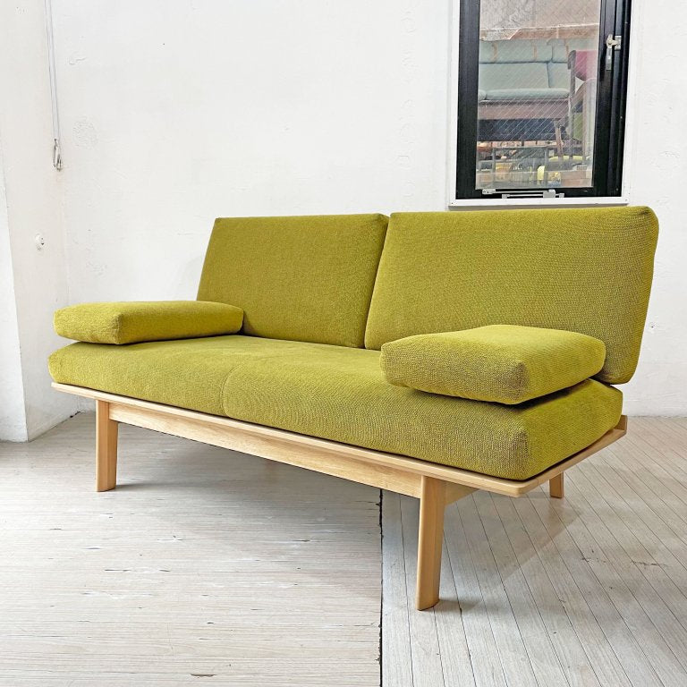 こちらは、継ぎのないロングなシートが、横になっても座っても、当たるところがなくて快適に使える「WG3012」2人掛けのソファ。