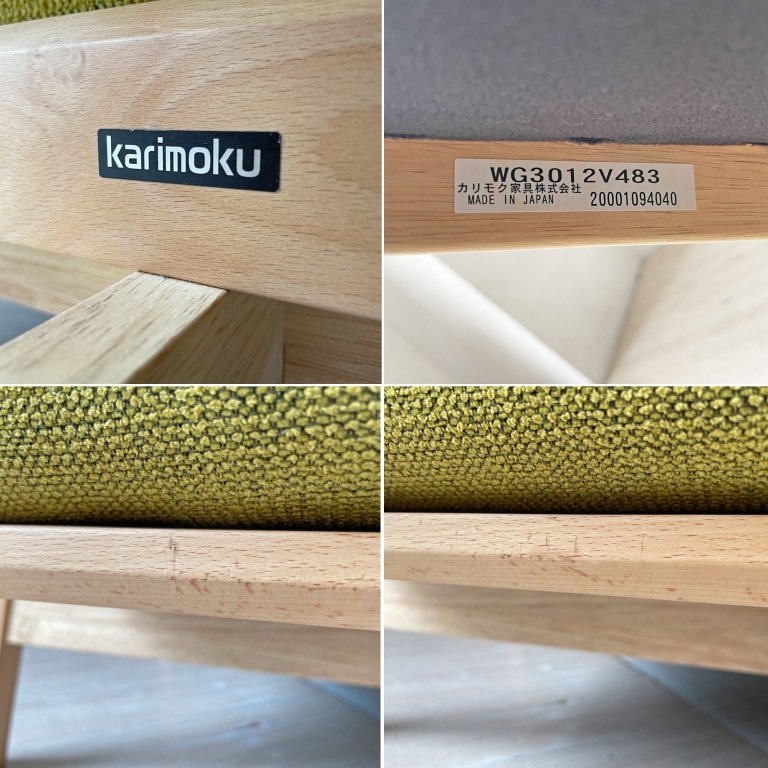 カリモク karimoku 2Pソファ 2人掛け WG3012 ブナ材 ピュアビーチ×ノルデミモザ ファブリック フルカバーリング 定価 : \264,000- 現状品 ★