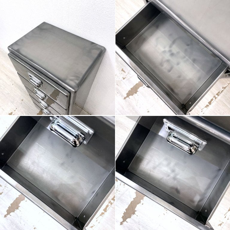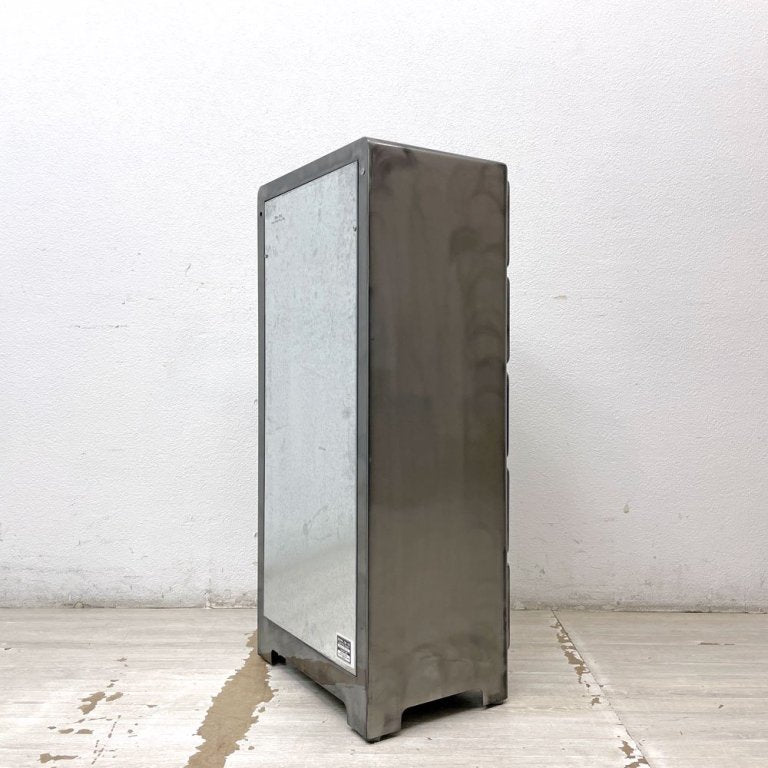 こちらは同社の代表的プロダクト『 5ドロワーズチェスト 』になります。金属の無機質な表情を残し、シックで大人びた空間演出を可能にしてくれるインダストリアルデザイン。全体がスチールフレームで構成され、角を敢えて丸く仕上げる事で印象を和らげ、ホーム・ショップユース問わず、幅広いシーンでマッチするように作られています。