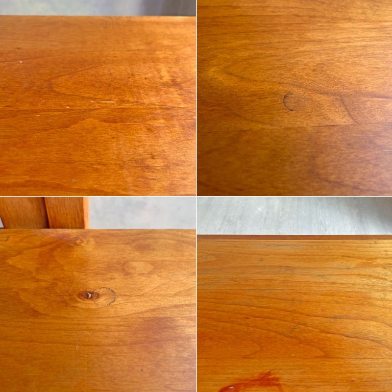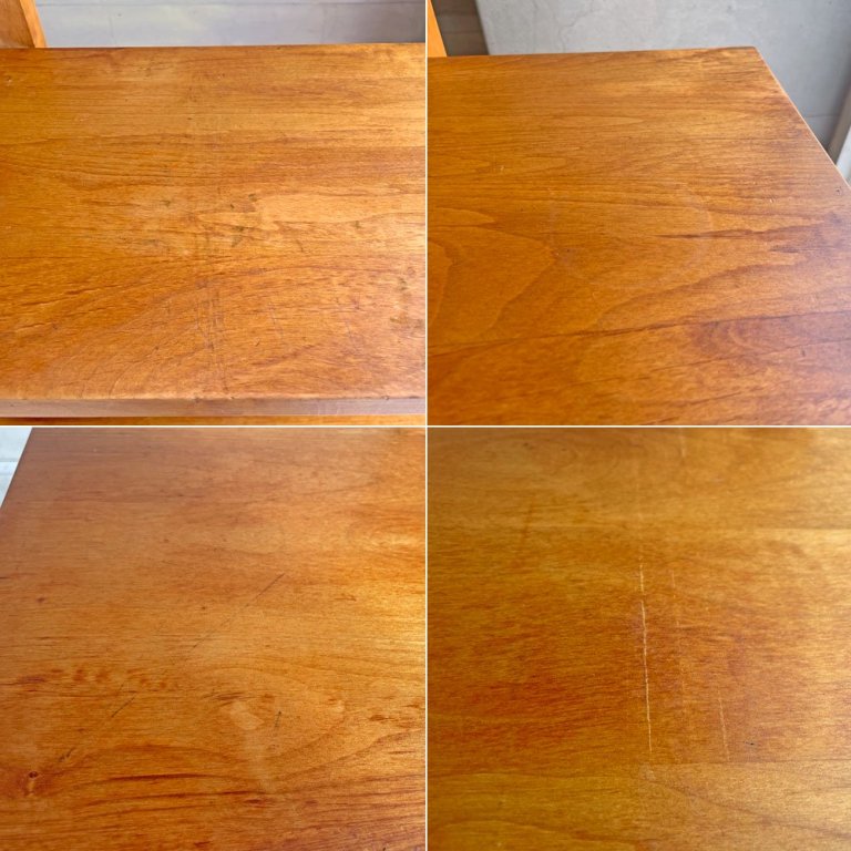 全体的に打痕や線傷、輪染み、落としきれない汚れ、色褪せや色移りなど、かなり使用感が見受けられます。しかしながらご使用頂く上で問題となる様な大きなダメージは無く、これからも実用頂けるコンディションを保っております。