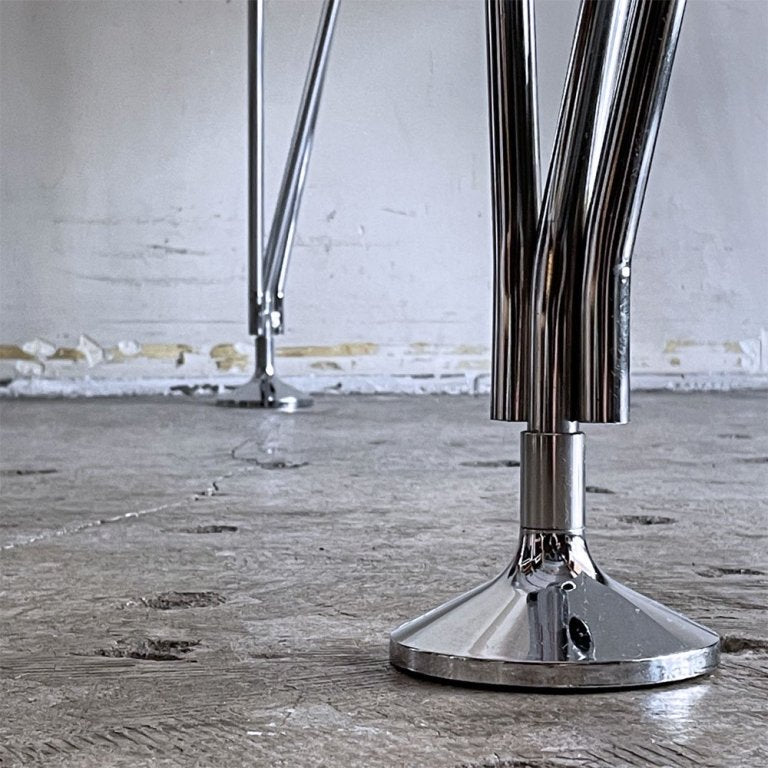 軽量のクロームメッキ・スチール製の脚はすっきりと美しく、安定感を持って見た目のバランスと堅牢性を支えます。