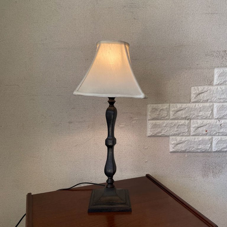 布シェードとアイアンベースの素材や色味の対比が程よいビンテージ感をまといつつも、派手すぎない装飾により設置するインテリアスタイルを選びません。