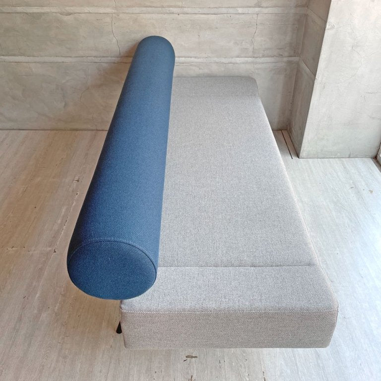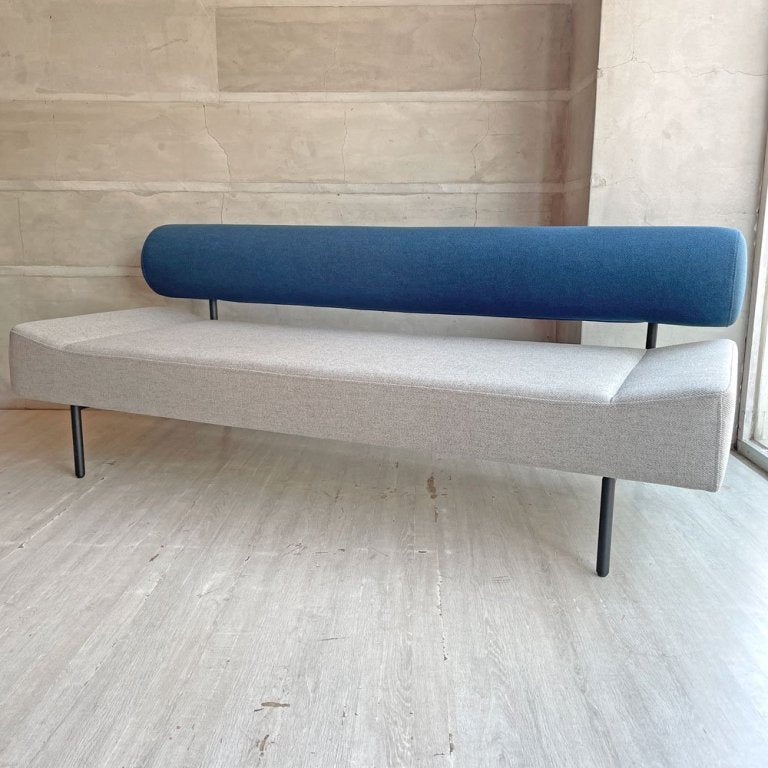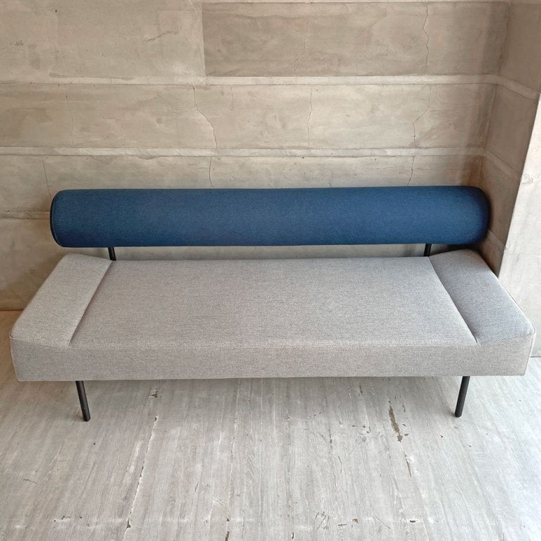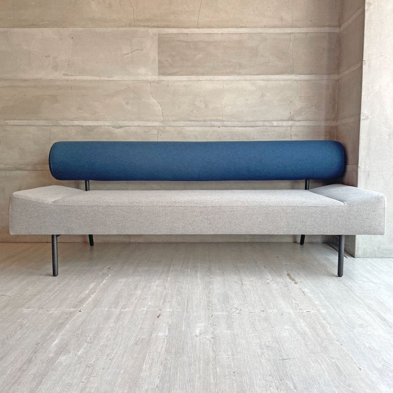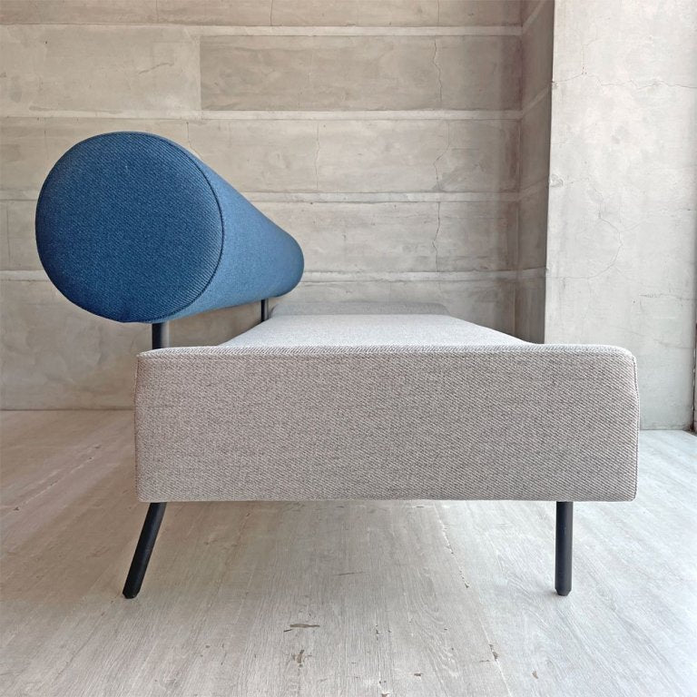 目を惹く円筒形の背もたれとスクエアの座面がパイプでつながるすっきりとしたデザインの「ディヴァンコ ソファ DIVANCO SOFA」。