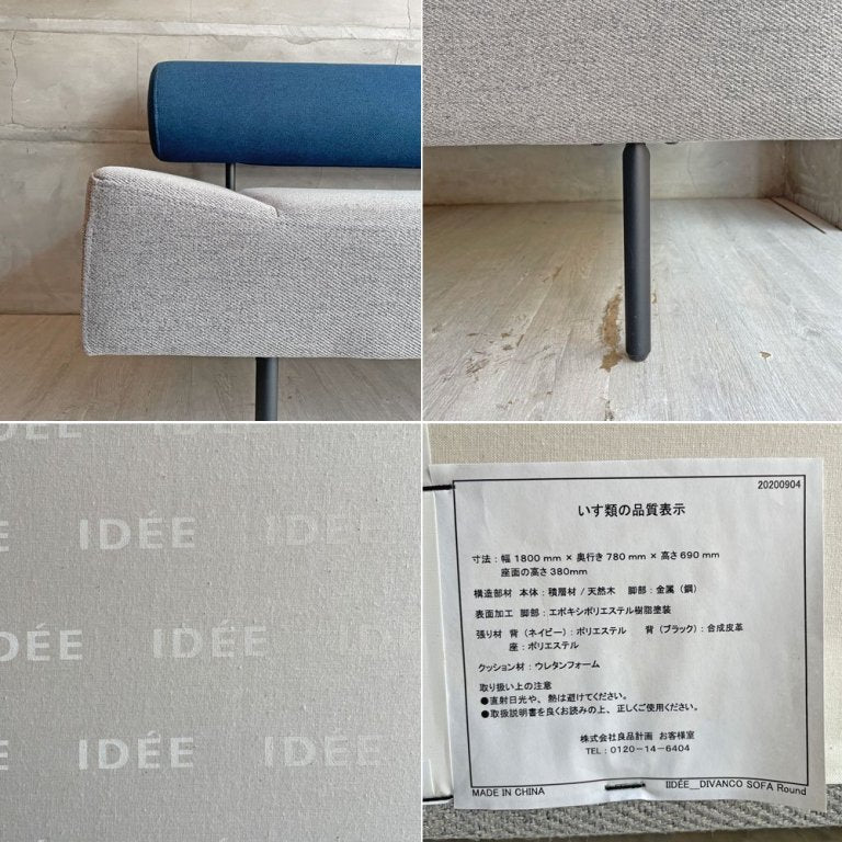 イデー IDEE ディヴァンコ DIVANCO ラウンド Round 3シーターソファ Navy × Dark gray W180cm 植木莞爾 定価¥143,000- ♪
