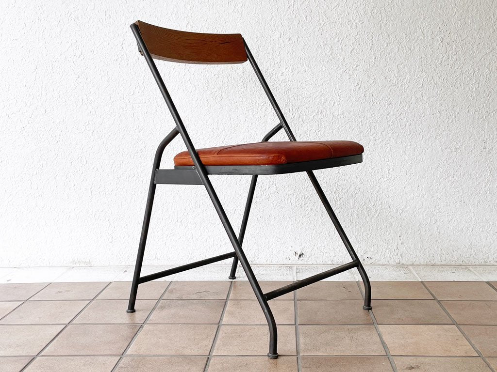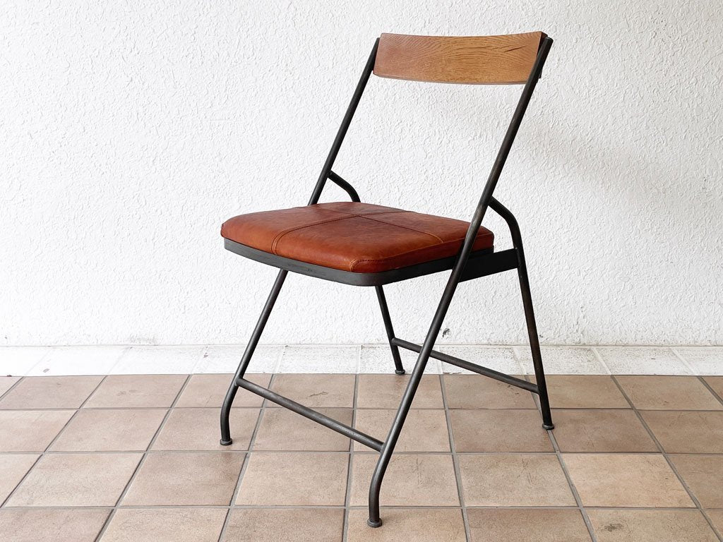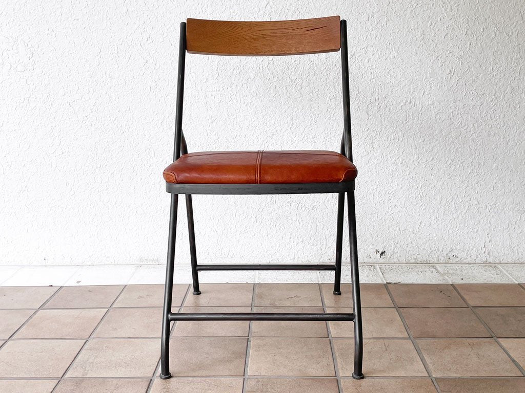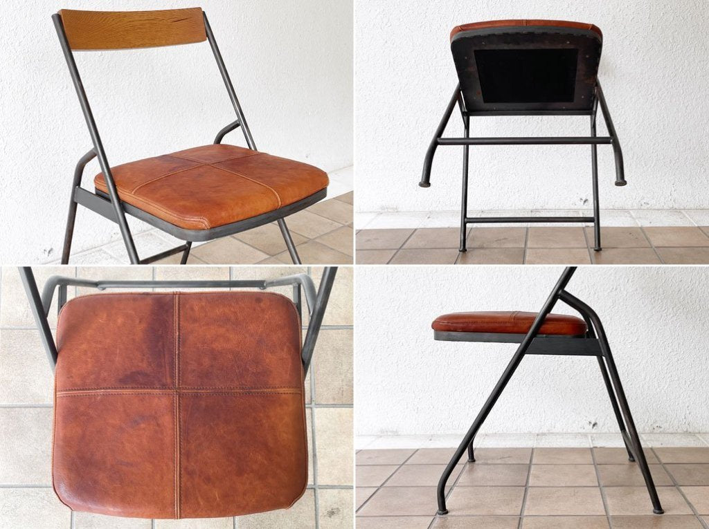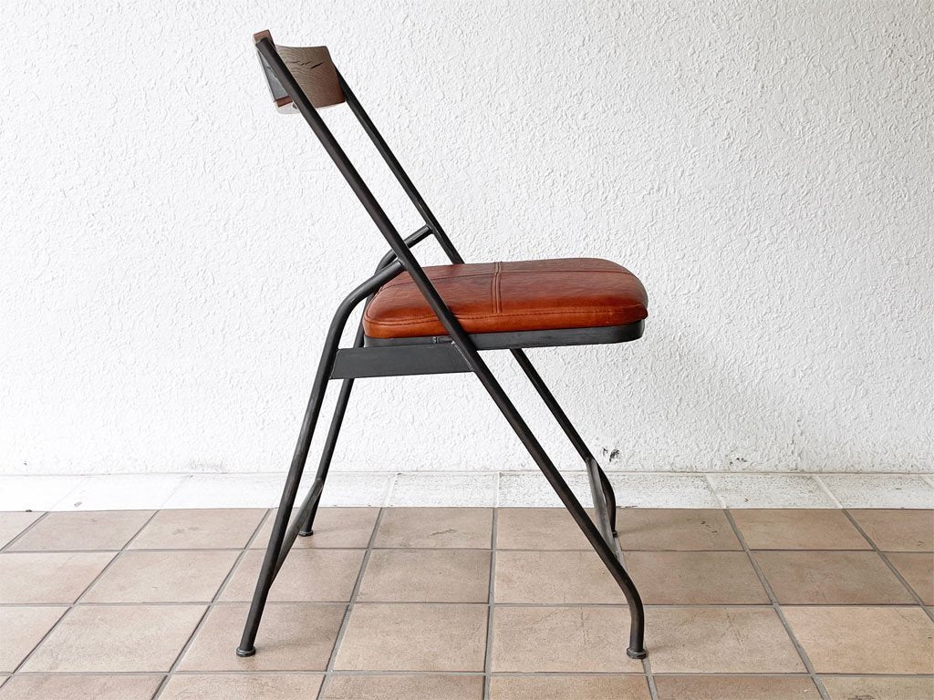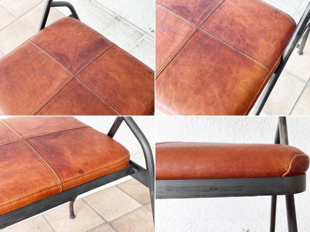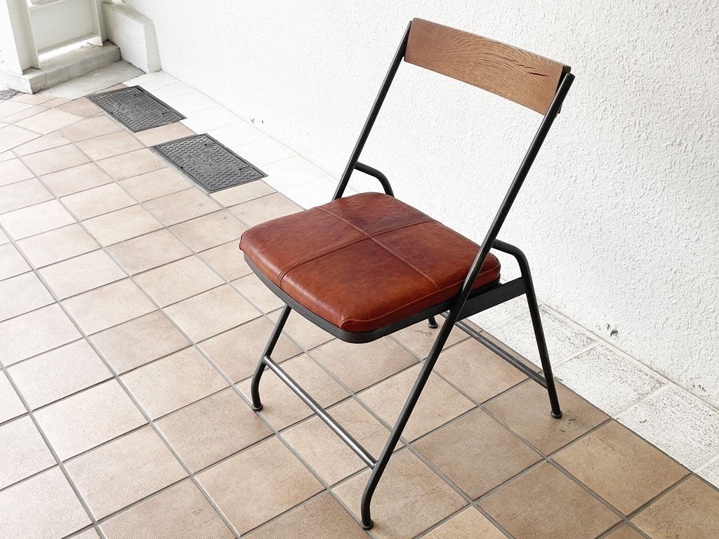 トラックファニチャー TRUCK FURNITURE スットチェア SUTTO CHAIR スチールロッド×オーク無垢材 レザー インダストリアル 参考定価:\78100- 廃番 A◇