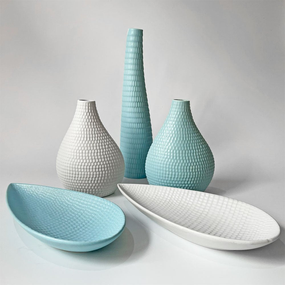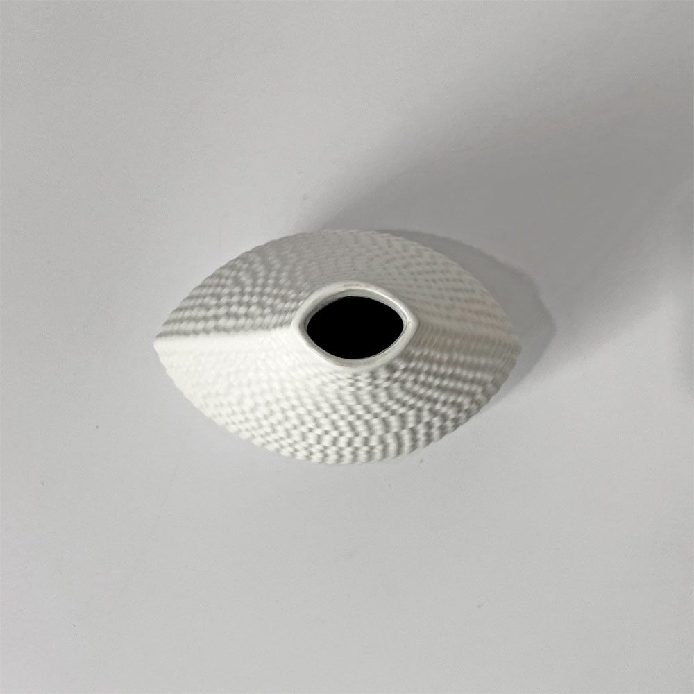 ふっくらと丸みを帯びた愛らしいフォルムに、繊細でリズミカルな模様が組み合わさり、可愛らしさとモダンさを兼ね備えたデザイン。