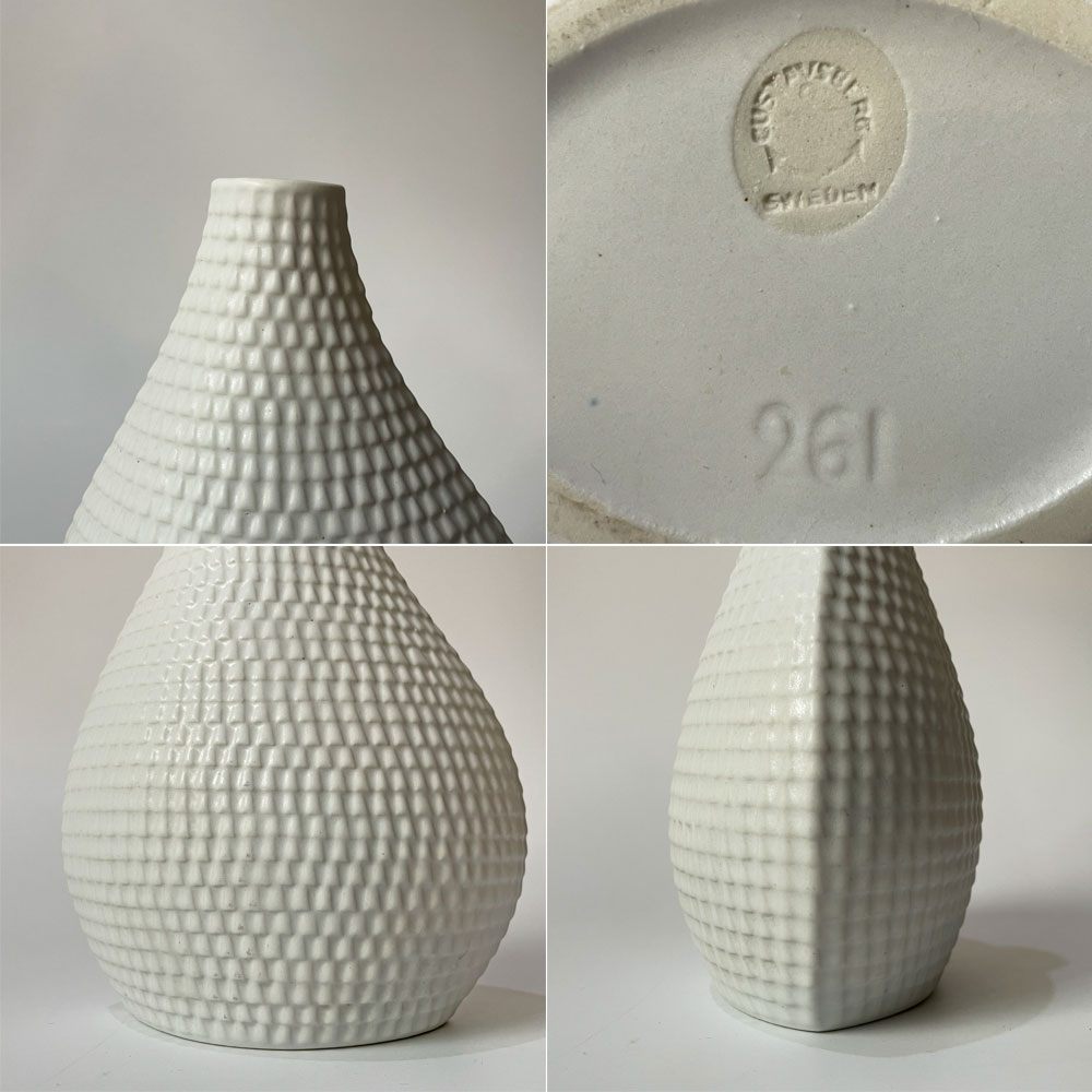グスタフスベリ GUSTAVSBERG レプティル Reptil フラワーベース 花瓶 スティグ・リンドベリ Stig Lindberg 北欧 ビンテージ ホワイト ★