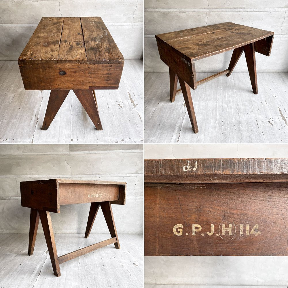 ピエールジャンヌレ Pierre Jeanneret オリジナルビンテージ スモールデスク スクールデスク Vレッグ チーク無垢材 チャンディーガル 希少 ♪