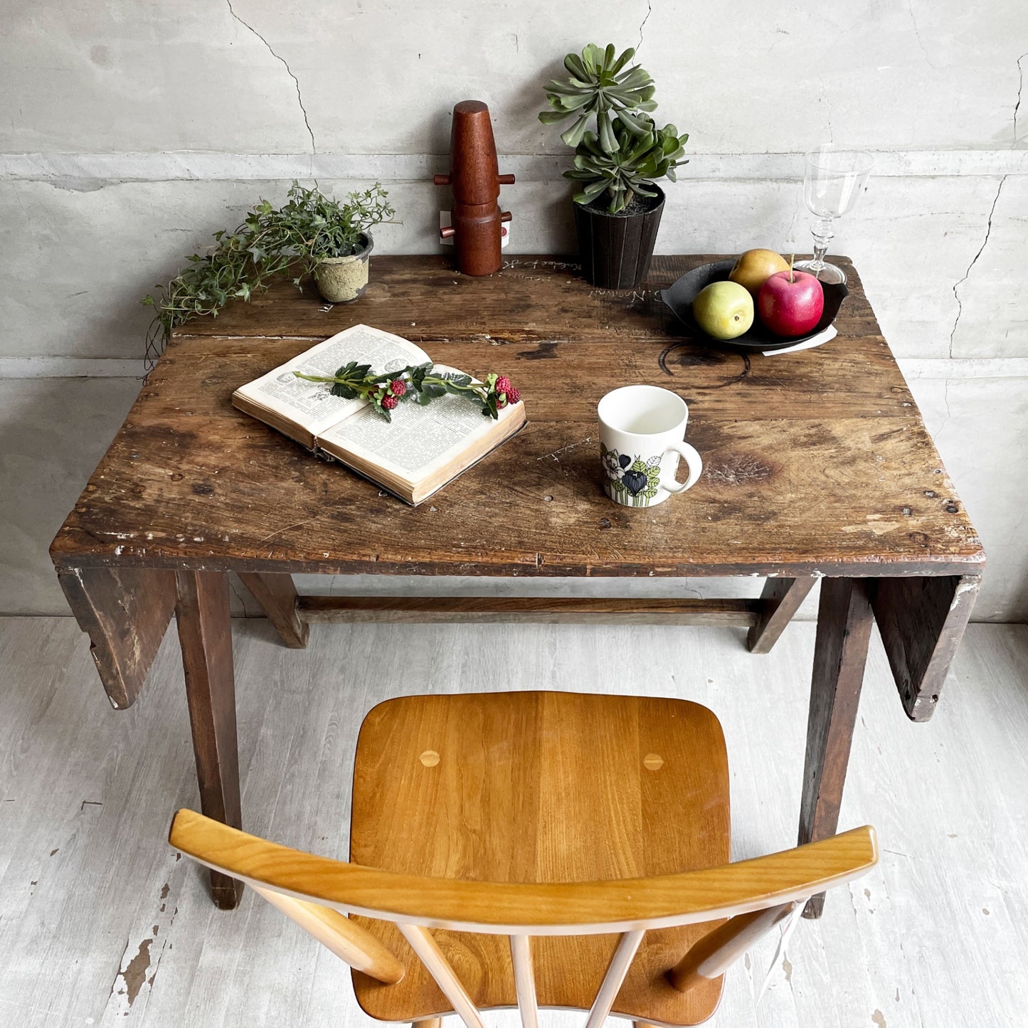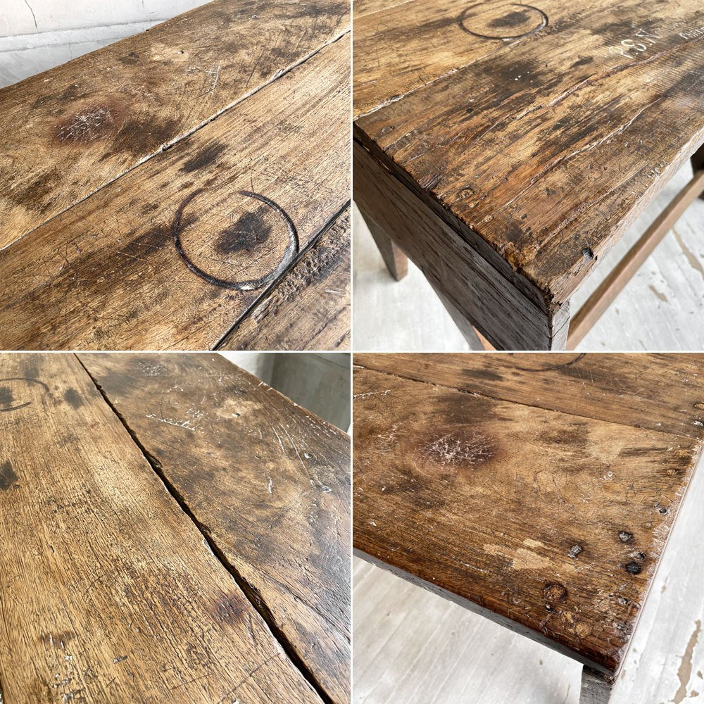 コチラのお品物はビンテージ品となります。使用・経年に伴う傷や擦れ、色ムラやペイントロス、染みや汚れ、木部の欠けやヒビなどがございます。また、天板の軽微な反りや天板継ぎ目の凹凸や段差などがございますが、ガタつきやグラつきなども無く、大きく美観を損なうようなダメージなどもございません。ビンテージ品ならではの風合いをお楽しみ頂きながら、これからも安心してお使い頂けるコンディションを保っております。