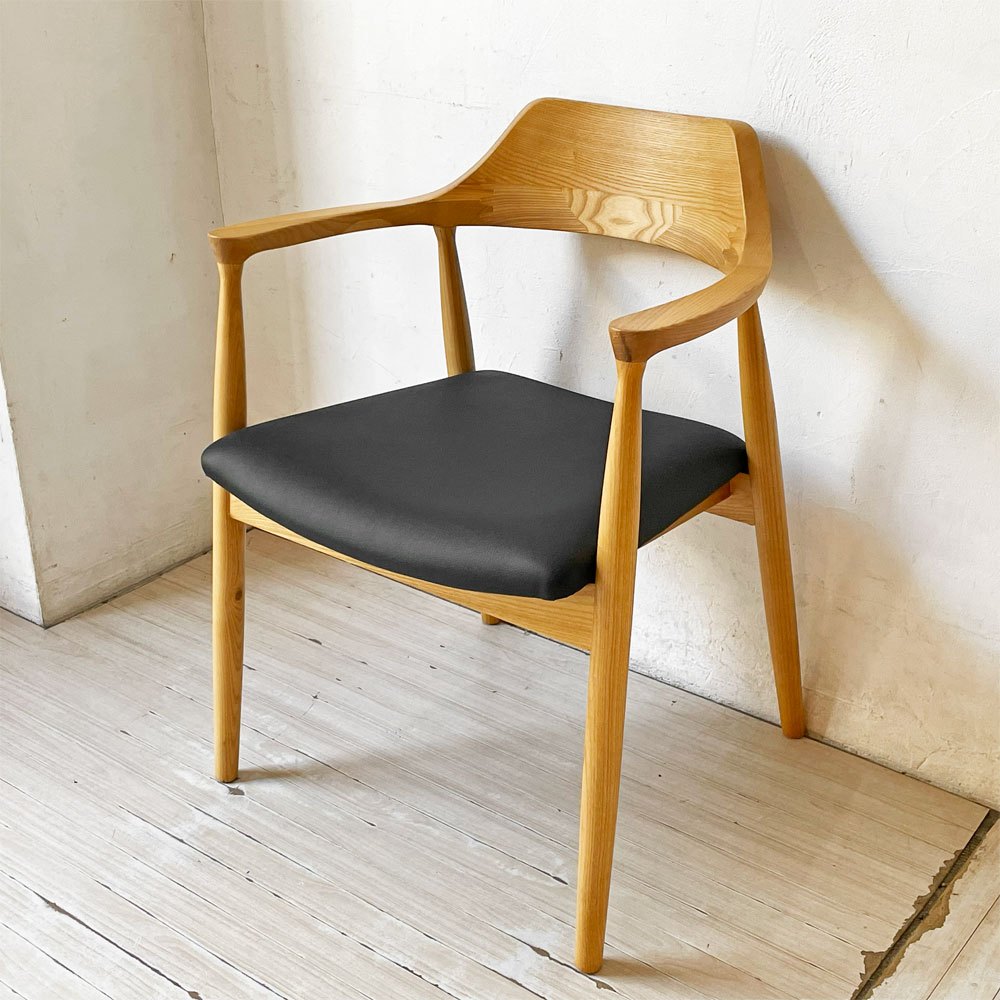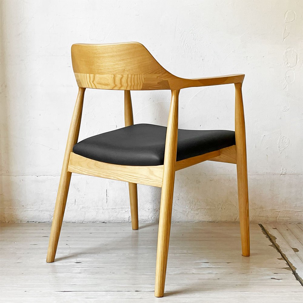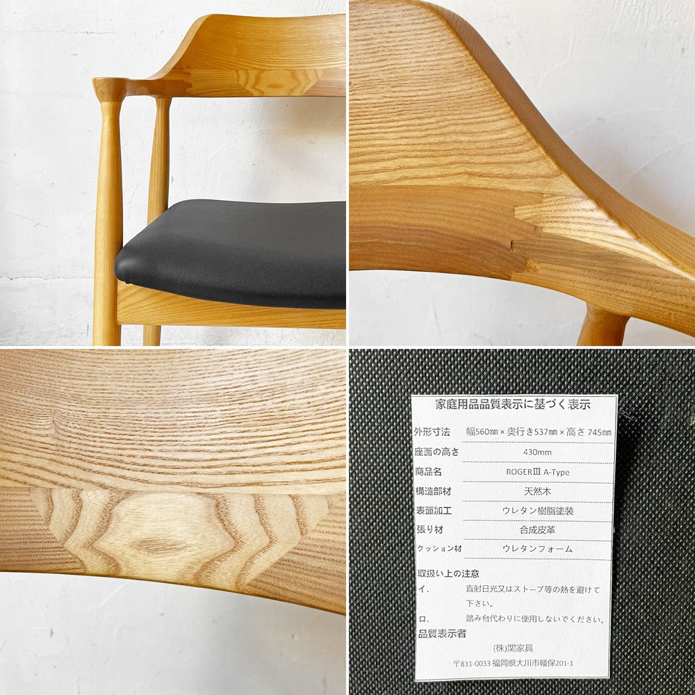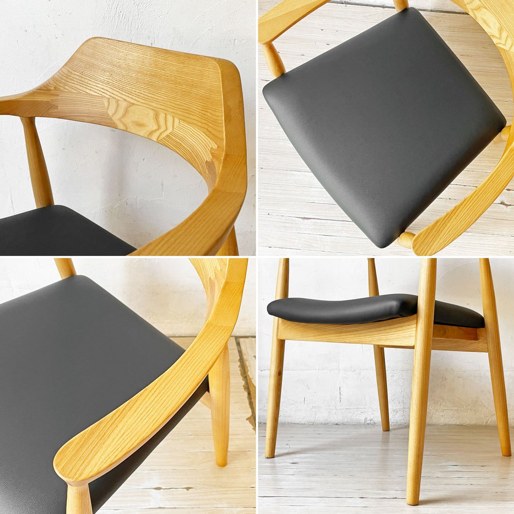 関家具 ロジャーⅢ ダイニングチェア アームチェア オーク材 PVCレザー ブラック 美品 ★