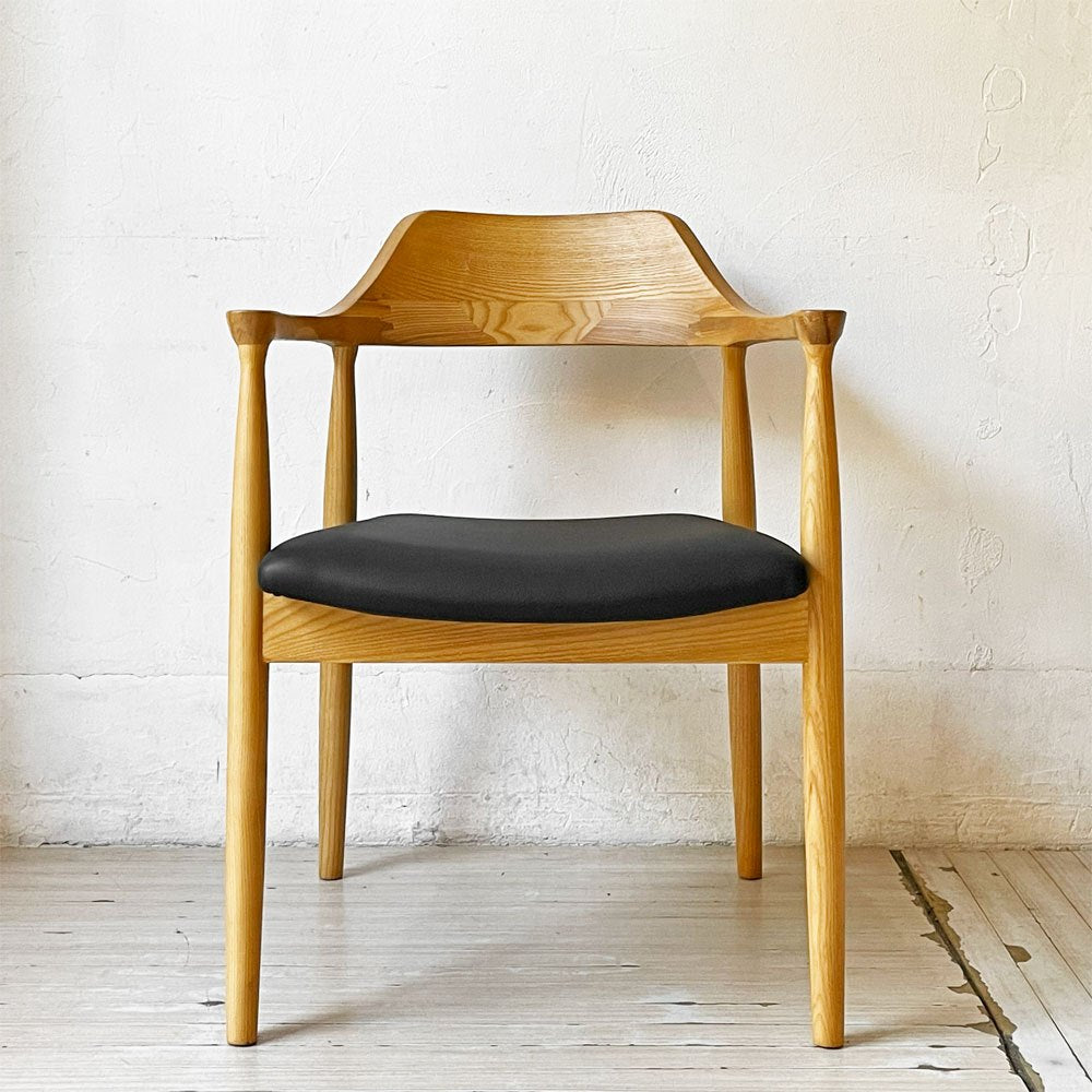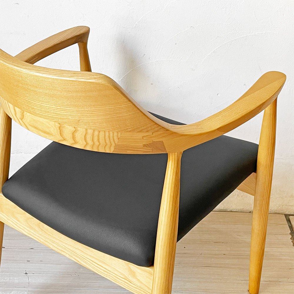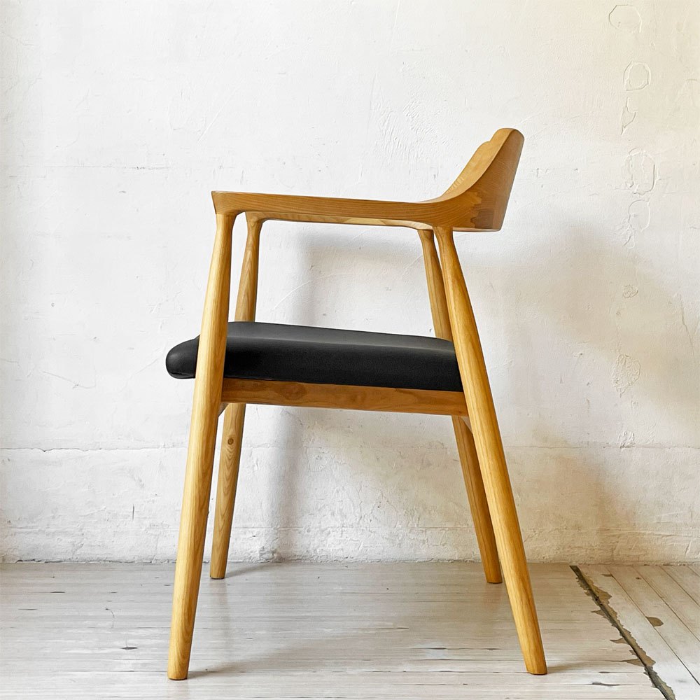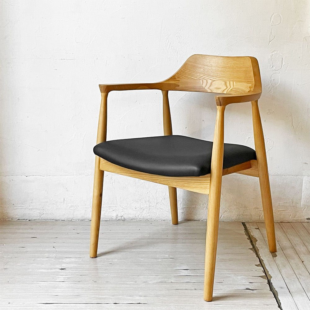 関家具 ロジャーⅢ ダイニングチェア アームチェア オーク材 PVCレザー ブラック 美品 ★