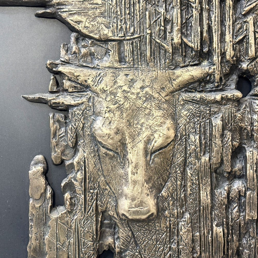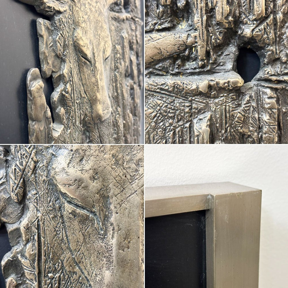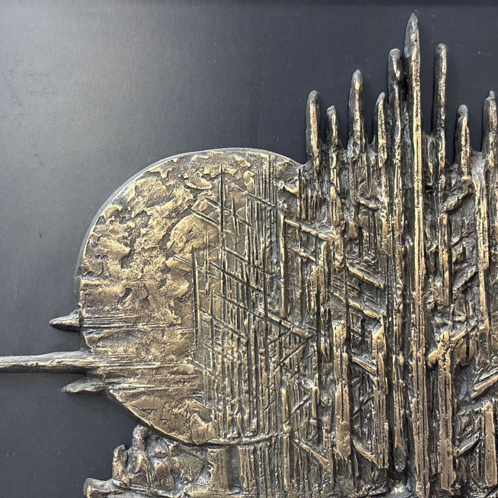 西村忠 ブロンズレリーフ 『静夜』 額装品 彫刻 金属造形 壁掛けインテリア ●