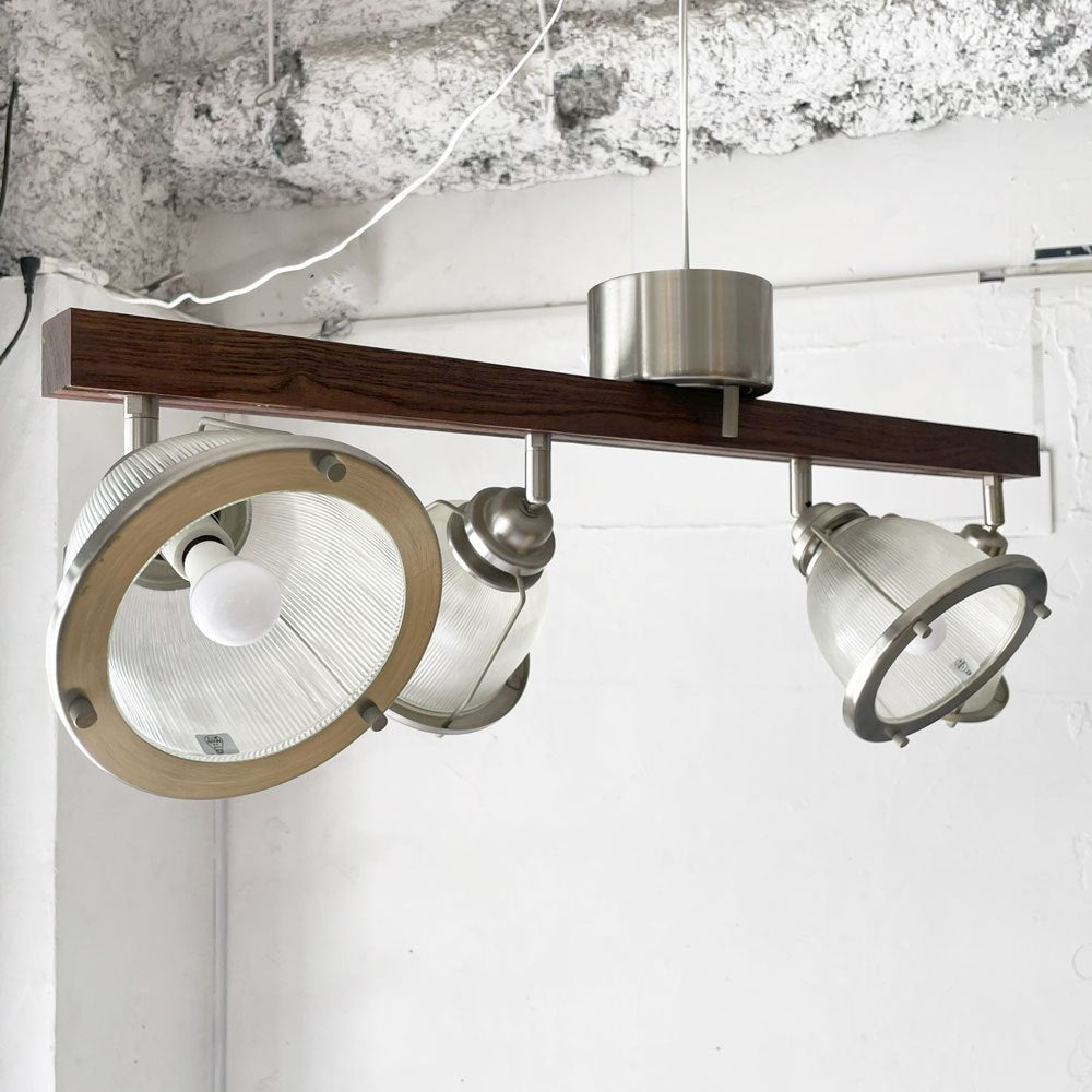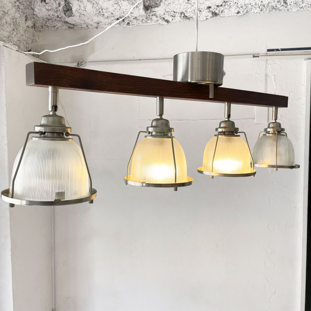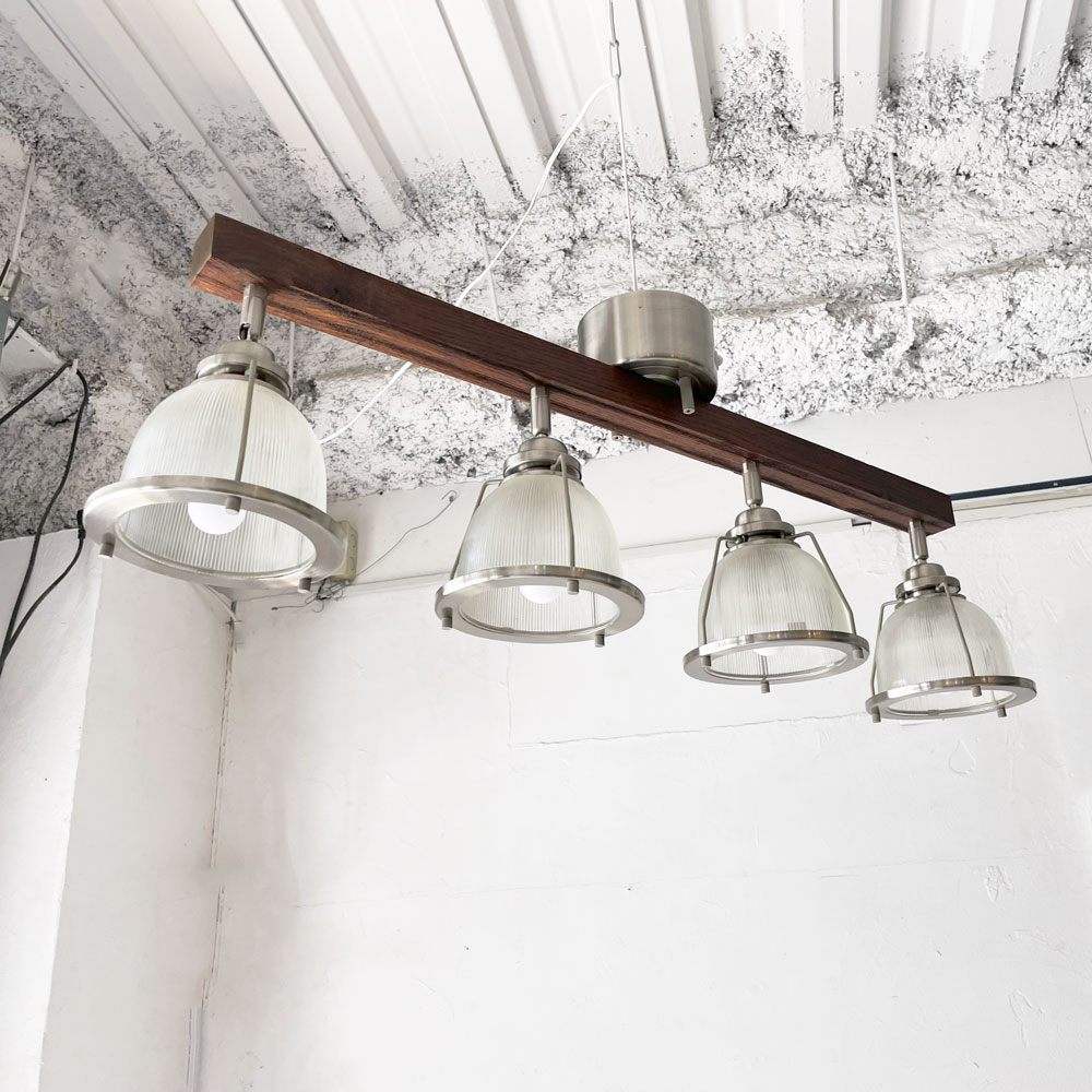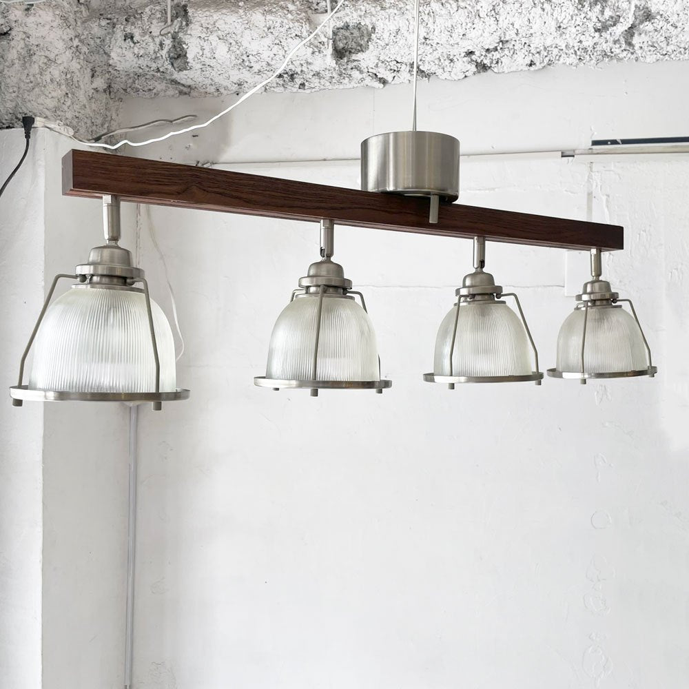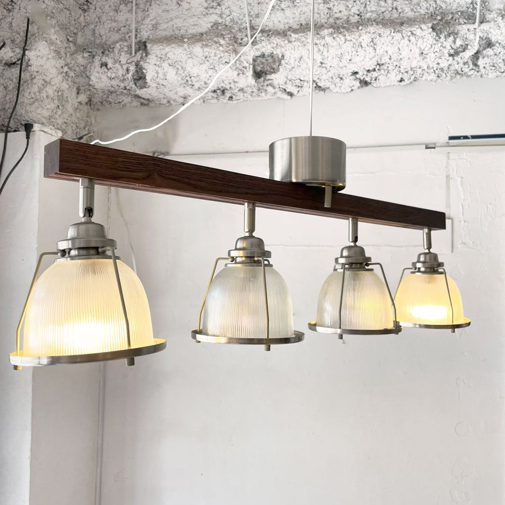 古材風の加工を施したウッドバーに、アンティーク調のガラスシェードを組み合わせたライト。