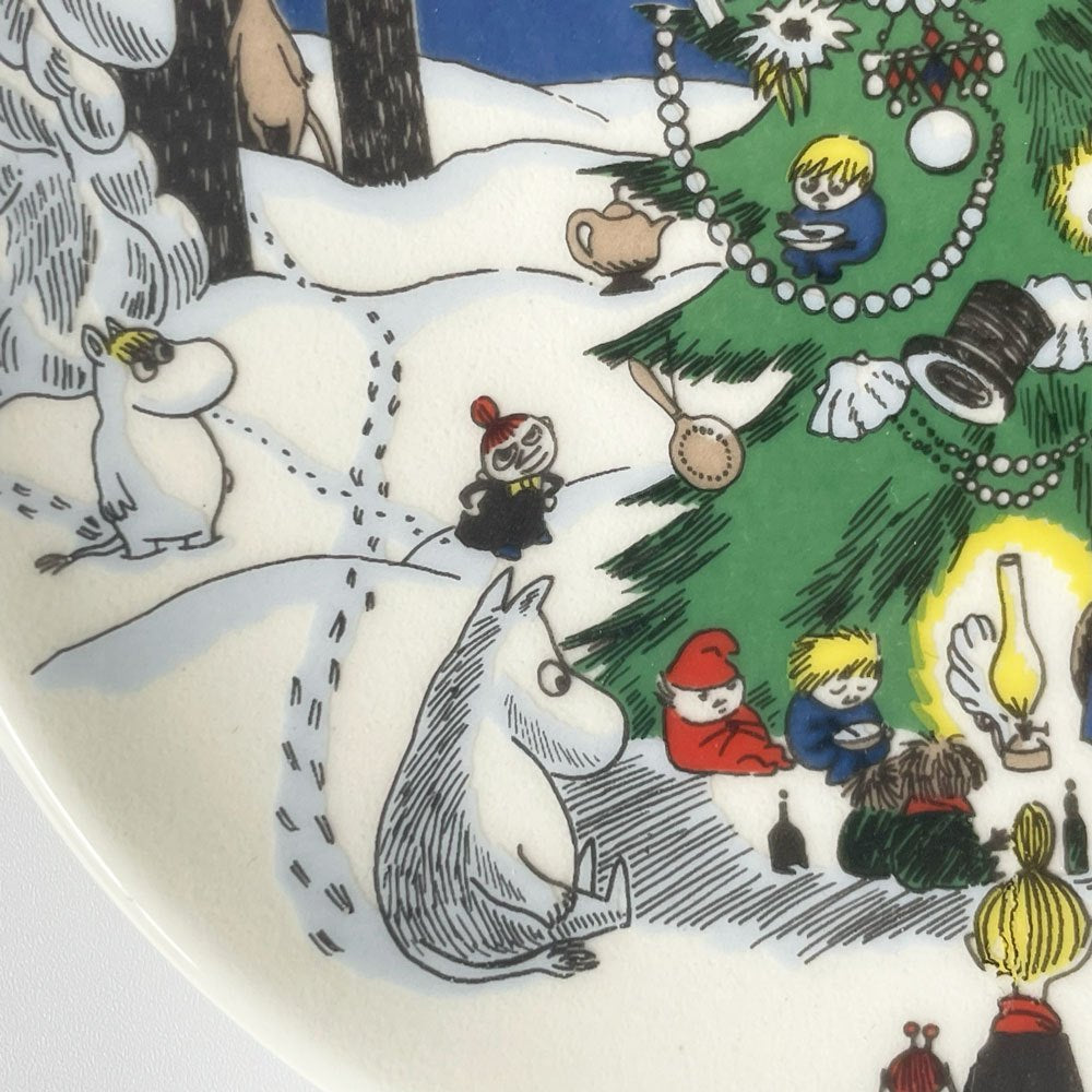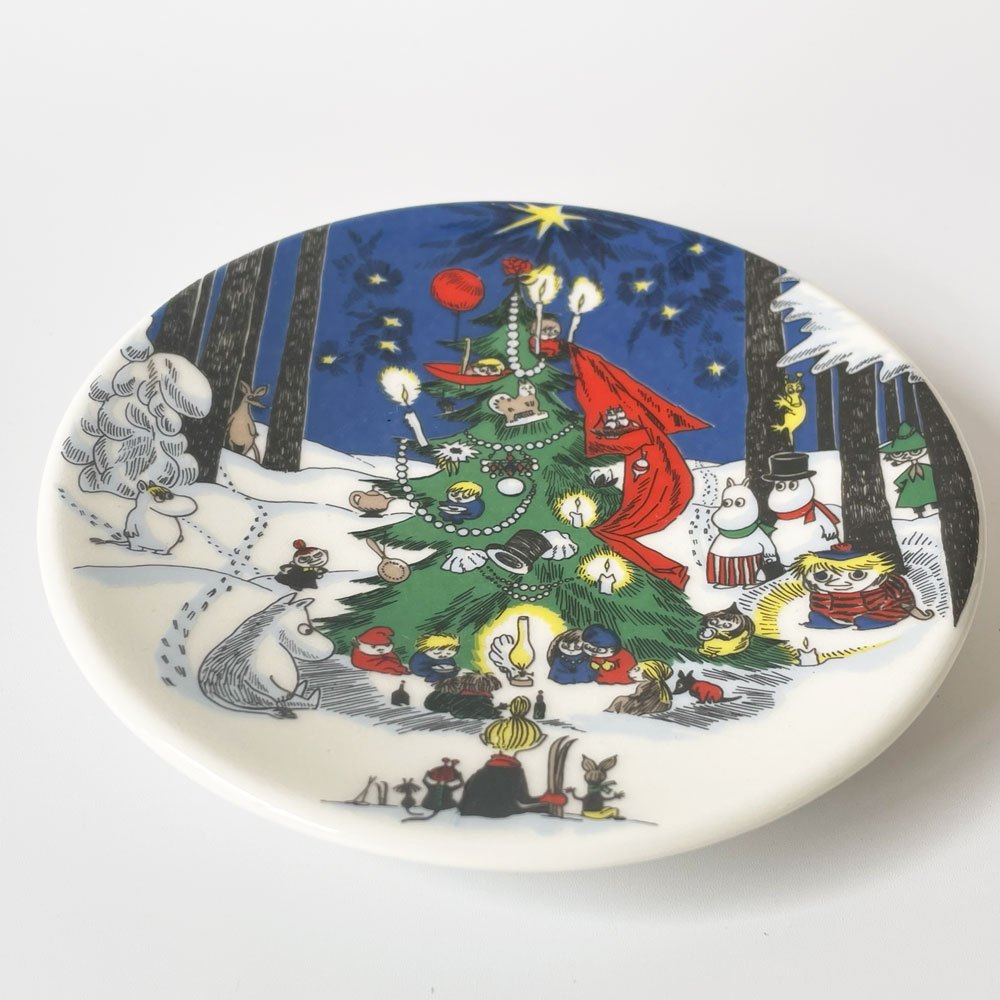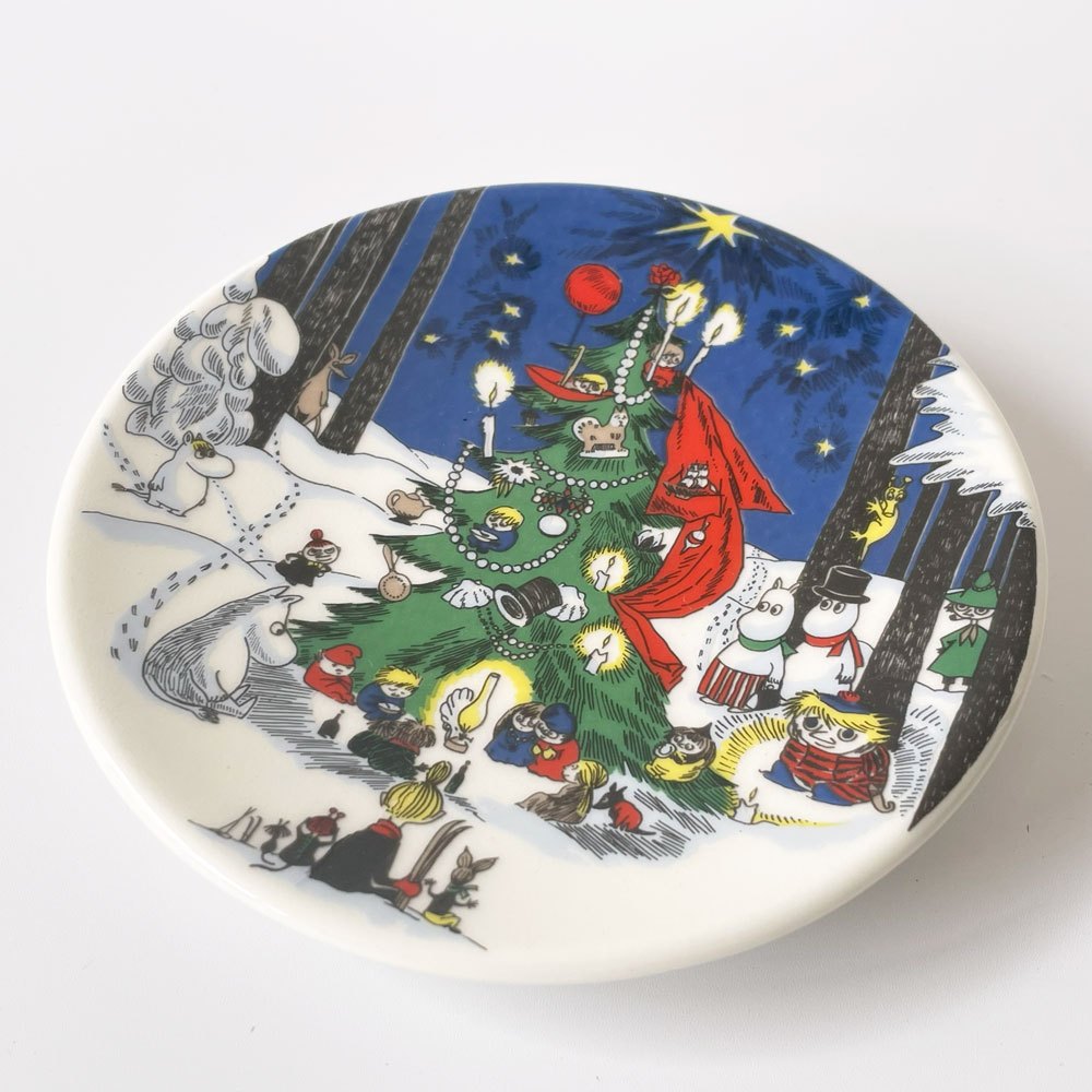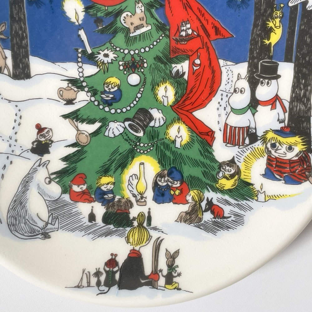 クリスマスプレートは2002年に販売が終了しており、こちらはムーミンたちがツリーを囲み、お祝いをしている人気の絵柄。