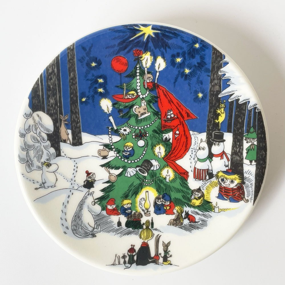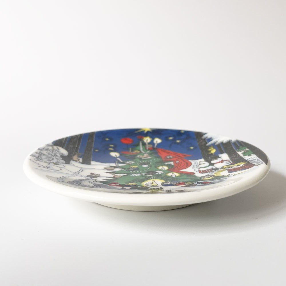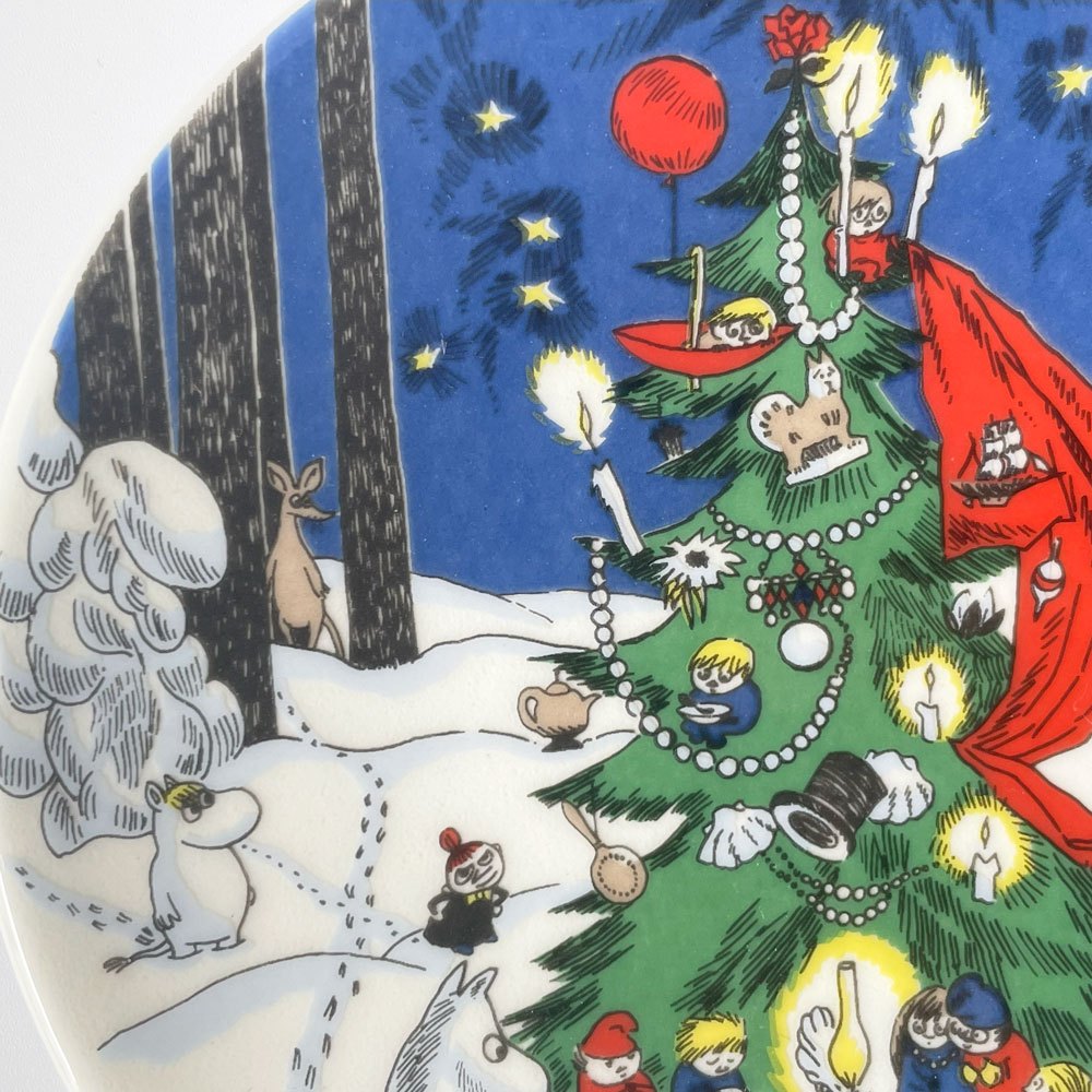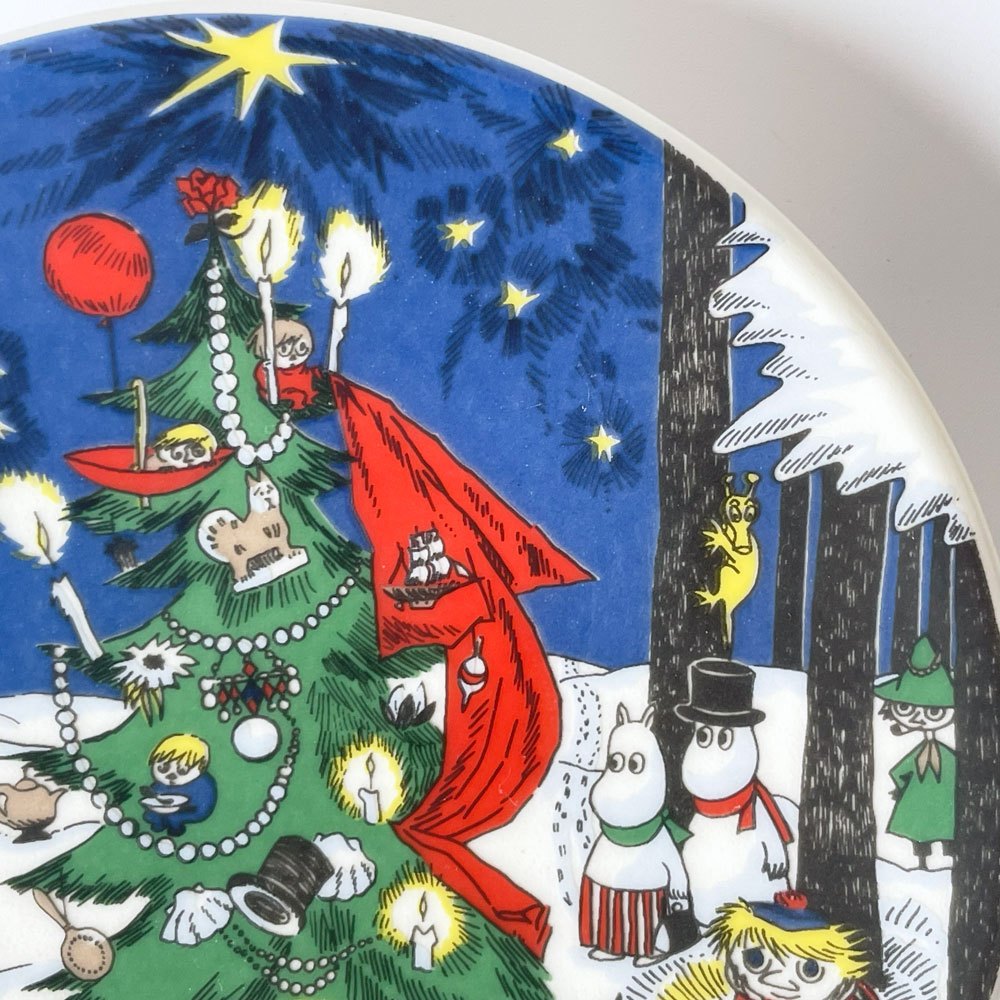 クリスマスプレートは2002年に販売が終了しており、こちらはムーミンたちがツリーを囲み、お祝いをしている人気の絵柄。