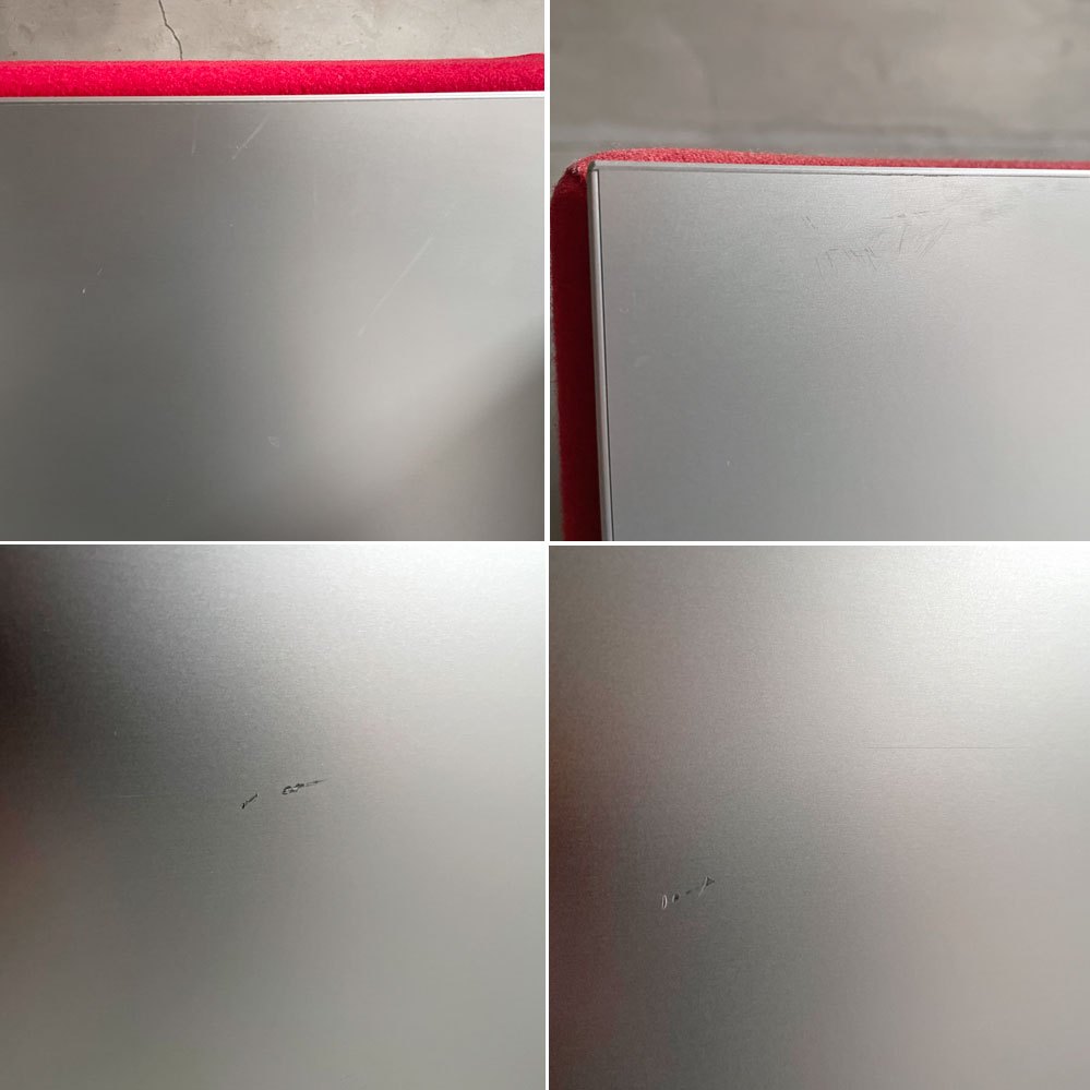 ファブリック上部の色ムラや色褪せ、金属フレームの傷や擦れ、くすみや取り切れない汚れなどがございます。また、クッションはマジックテープで固定されており、すべて取り外し可能な仕様です。座面クッションは問題なく取り外しができますが、その他のクッションにつきましては、取り外す際にマジックテープごと外れてしまう恐れがございますので、取り外しは推奨いたしません。その他、クッションのヘタリなども無く、ご使用に問題となるダメージなどもございません。これからも安心してお使い頂けるコンディションを保っております。