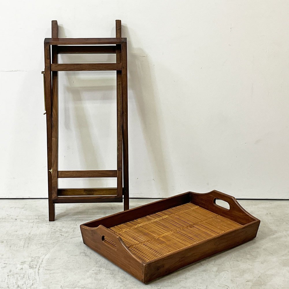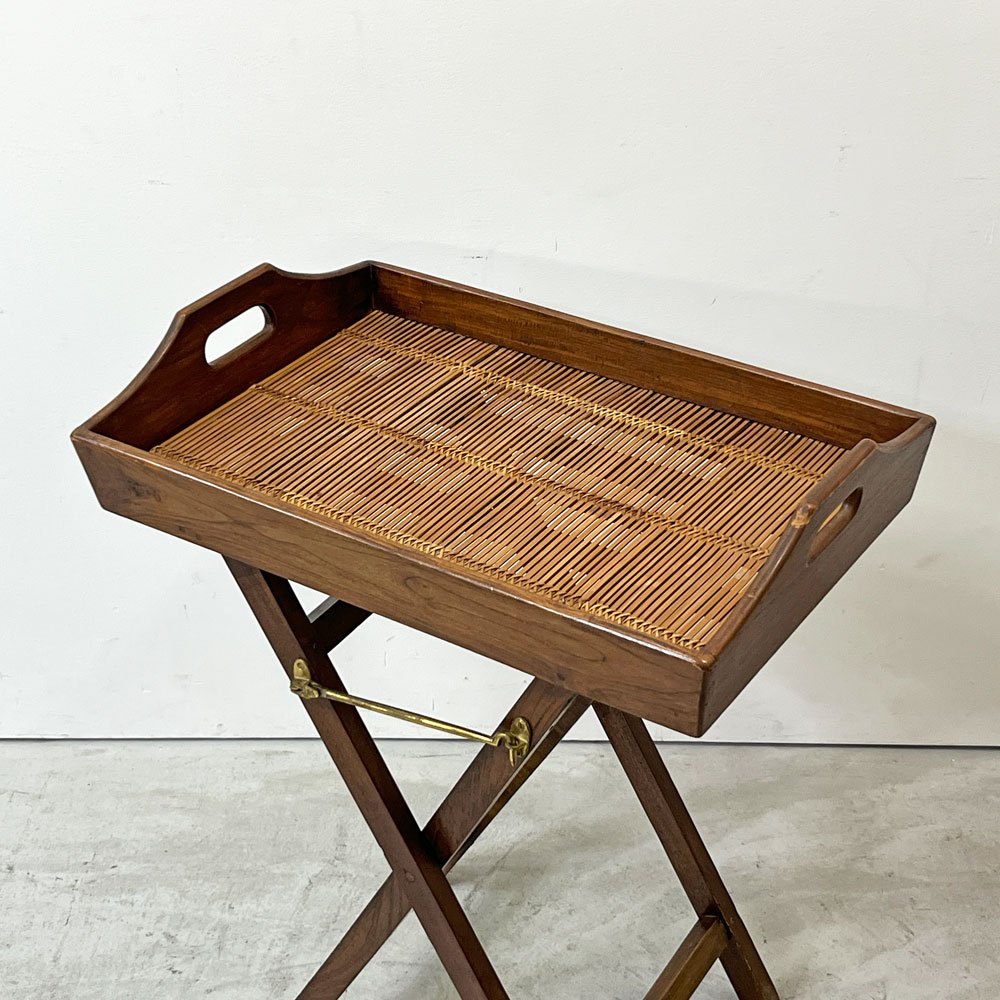 ヒッカドゥワ HIKKADUWA フォールディング トレイテーブル サイドテーブル アジアンチーク無垢材 × バンブー バリ家具 ●