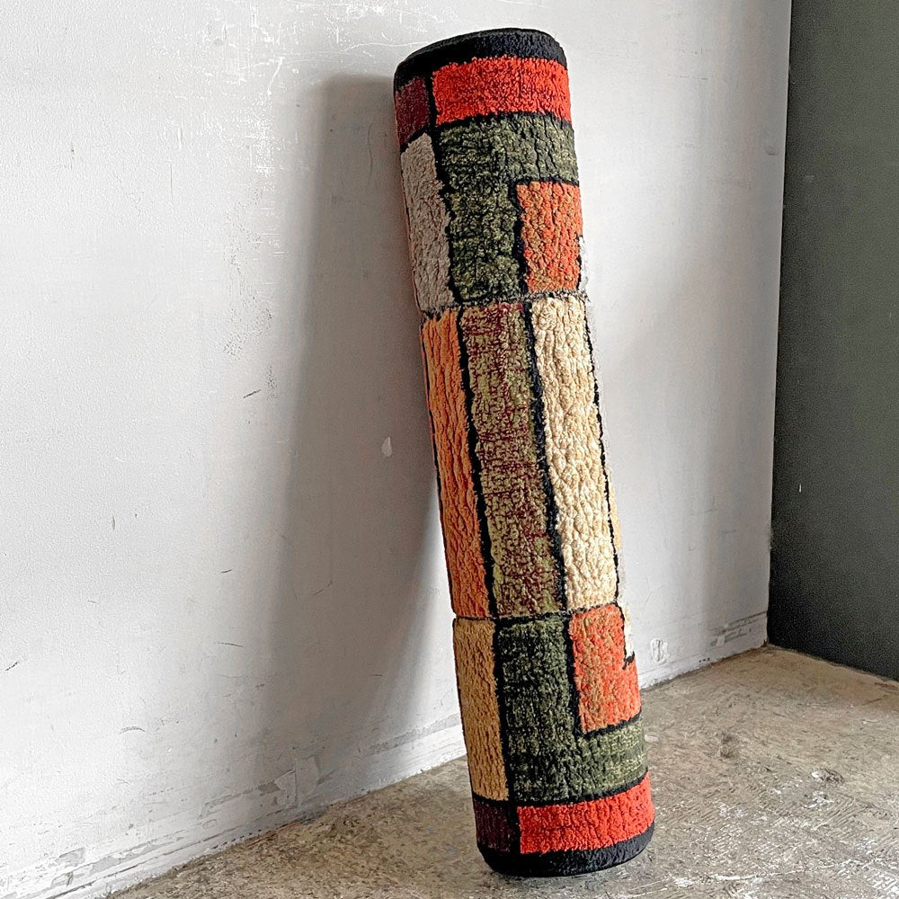 ラグに引かれた直線的なラインは職人の手作業によるハンドカービング加工が施されており、凹凸のある立体的なデザインに。