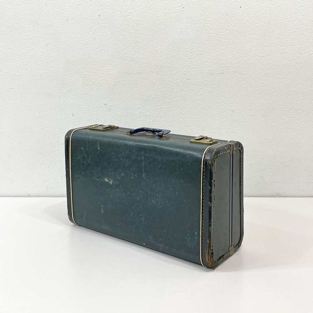 ビンテージ Vintage トランク ボックス 収納箱 ベークライトハンドル ネイビー色 店舗什器 ●