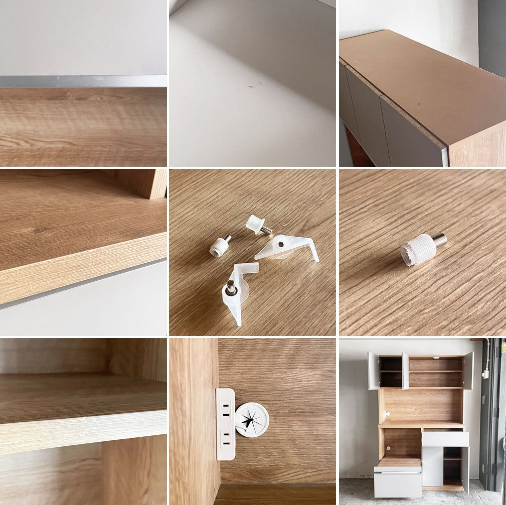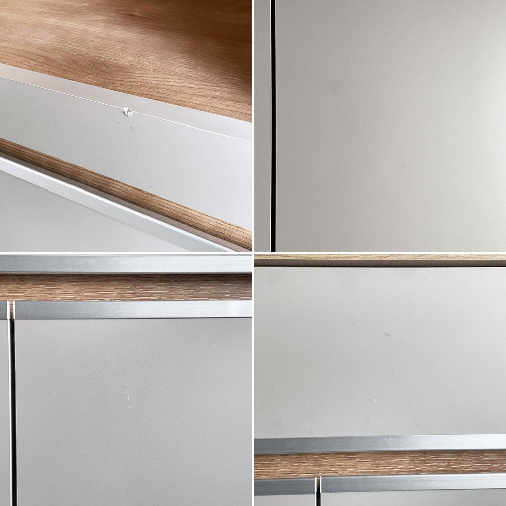 使用に伴いスライド棚前面に打痕、その他扉に細かな傷とペイントロス、うっすらとした色むら、棚板の極僅かな擦れ等はございますが、大きく目立つダメージはございません。