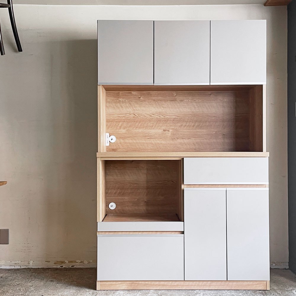 KAGUCOCO ナポリ キッチンボード 食器棚 ナチュラルグレージュ W116.5cm 大川家具 ■